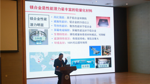 潘院士以“镁合金”为例,向同学们展开讲解了研究材料的必要性与重要性。他提到,随着时代发展,矿产资源短缺越来越严重,人们迫切的需要一种可以替代的新材料新能源补上资源缺口,而在全球拥有丰富存储量的镁无疑是很好的突破口。随着科研的步步推进,作为最有潜力的轻量化绿色材料,镁合金在汽车、轨道交通、航空航天、生物材料等方面的应用势必越来越广。潘院士鼓励各位师生注重材料创新能力的