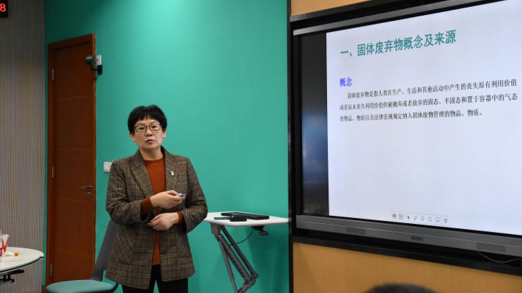 随后,刘芳副教授为我们分享了“工业固体废弃物的资源化综合利用”。她从四个方面做了讲解,分别是固体废弃物的概念及来源、固体废弃物分类、固体废弃排放与防治、工业固废综合利用典型案例。她先是介绍了固体废弃物的概念、分类以及来源,让大家对其有了一个基本了解。接着针对固体废弃物对环境的严重污染问题以及未来的发展展望,提出了一些资源再利用的方案。最后分享了一些关于固态废弃物再利用的典型案例,鼓励大家努力研究设计出相关合理有效的再利用方案,为保护环境安全、节约国家资源贡献一份力量。