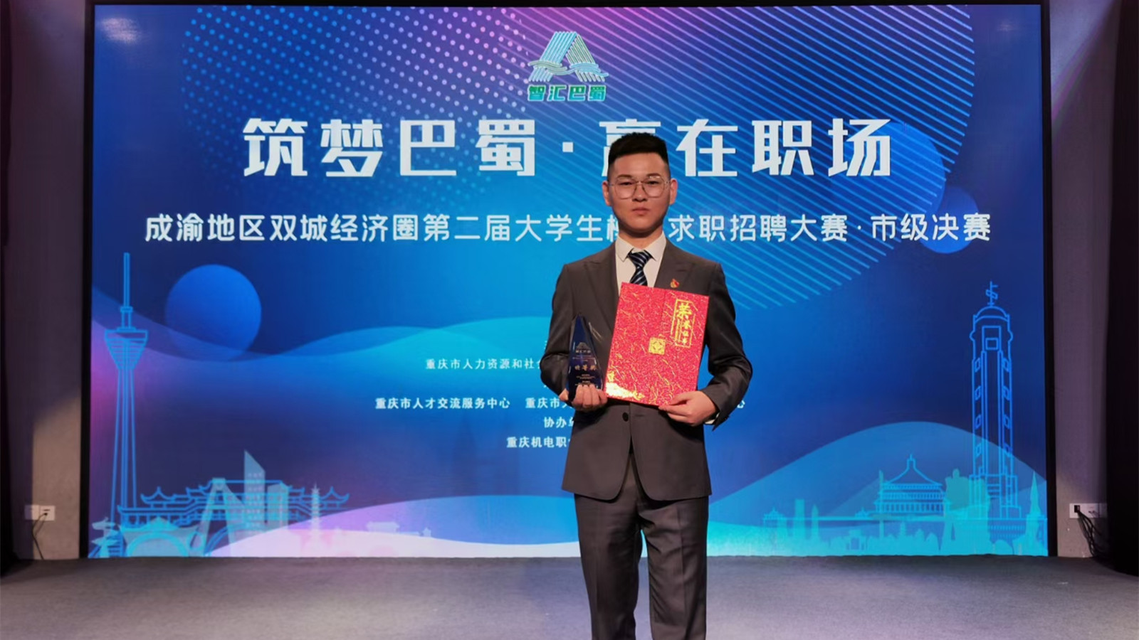 6月8日,“智汇巴蜀”成渝地区双城经济圈第二届老员工模拟求职招聘大赛重庆赛区决赛在重庆市老员工就业创业公共服务中心(大创慧谷)举行,公司博士生陈毅从13万余名参赛选手中脱颖而出,与40名高校参赛选手同台竞技,最终斩获大赛特等奖。陈毅等9名优秀选手将代表重庆市参加6月底在渝举行的成渝地区双城经济圈第二届老员工模拟求职招聘大赛总决赛。