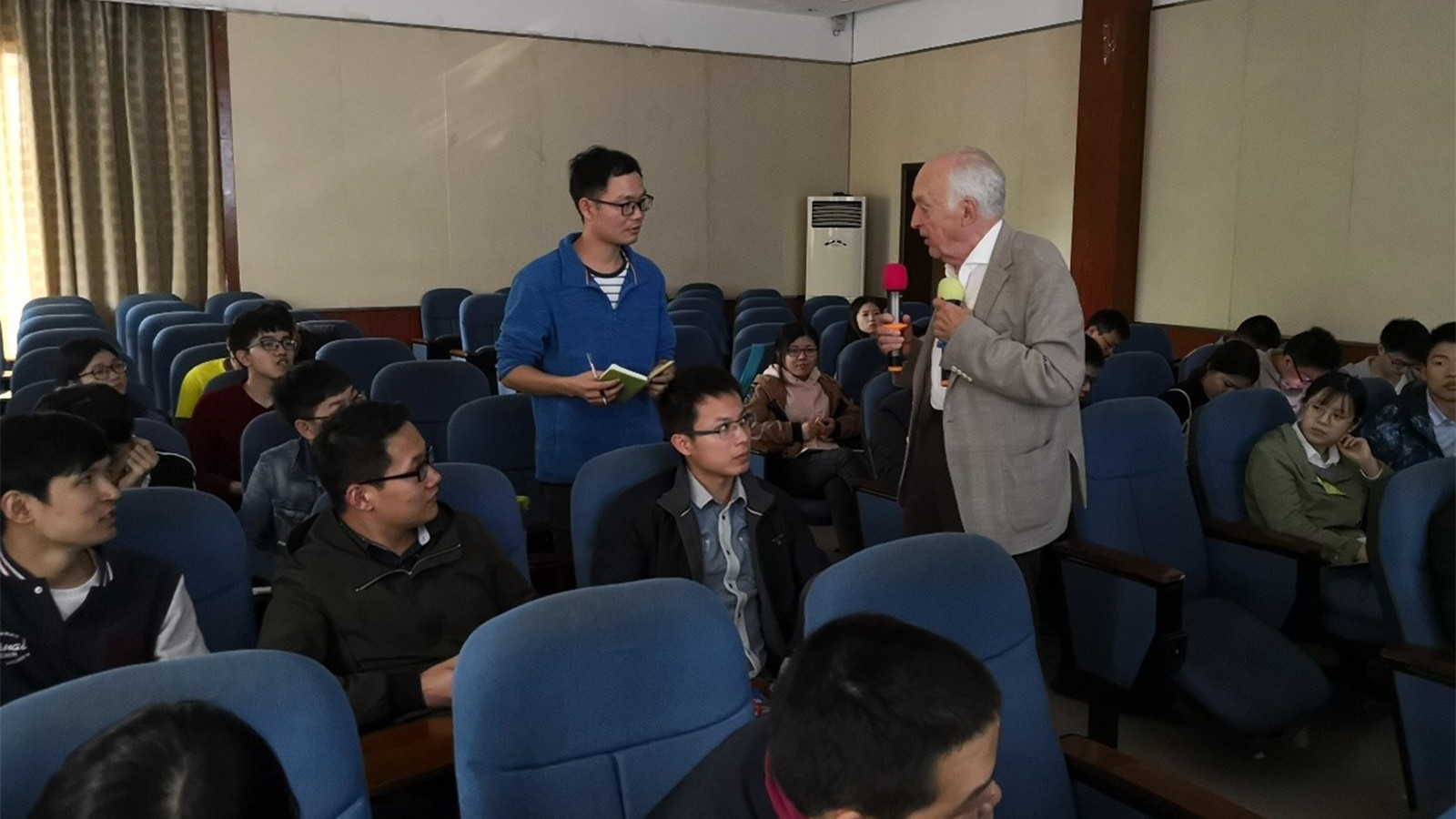 2018年11月Niels Hansen教授在好博体育做学术报告时与员工互动的场景。