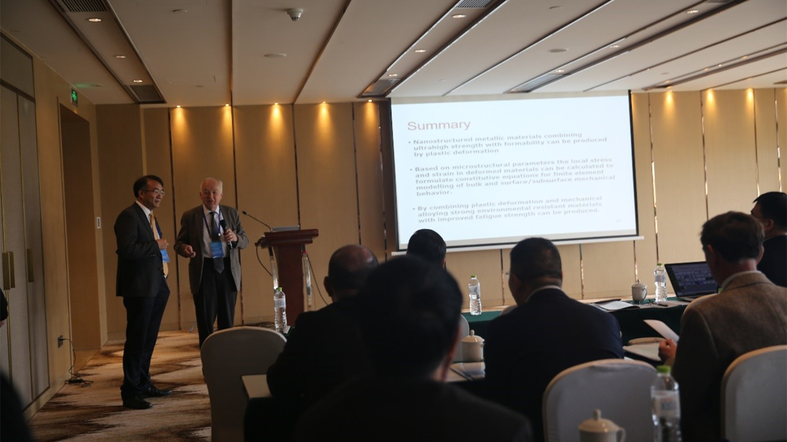 2019年11月2日,Niels Hansen教授在好博体育主办的第三届先进结构材料国际研讨会上提问发言。
