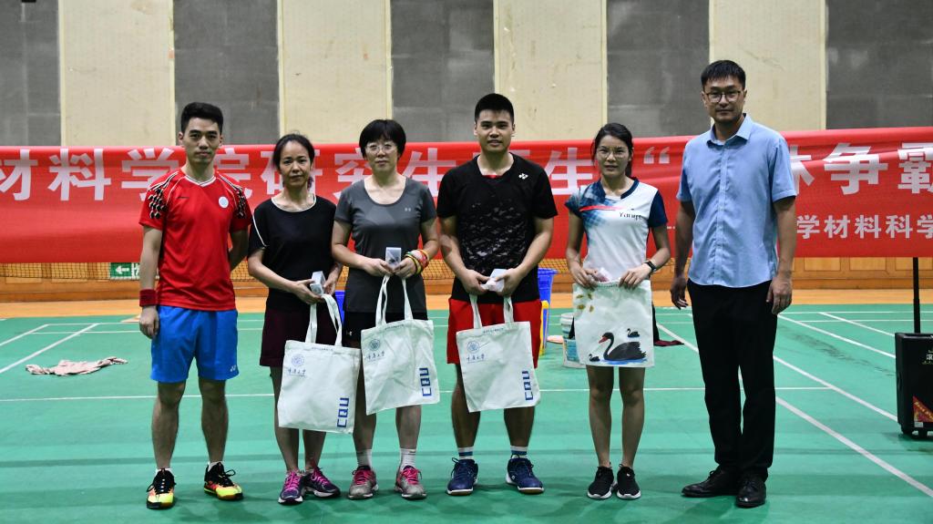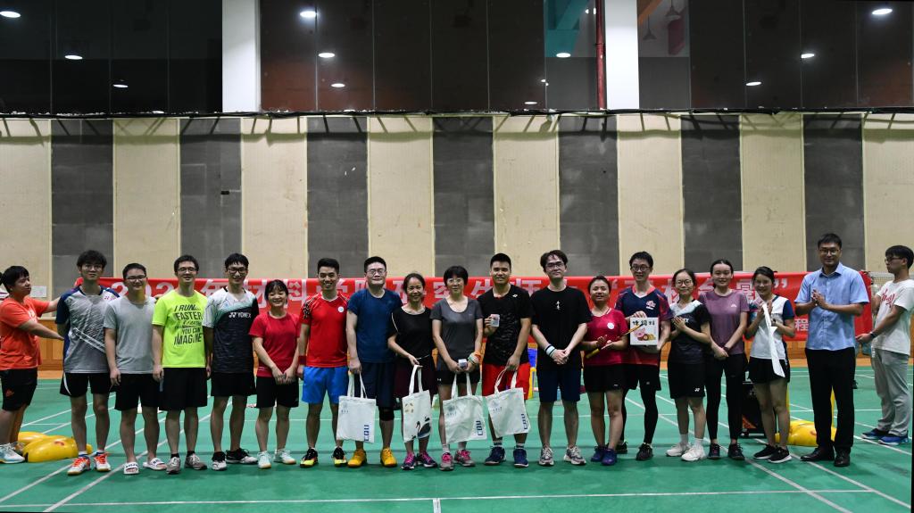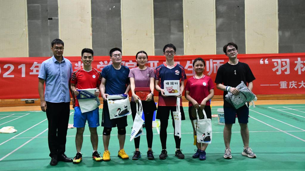 比赛结束之后,委副书记李想为获奖队伍颁奖并合影留念。李想对获奖队伍表示祝贺,对在场的工作人员表示感谢,并呼吁大家加强体育锻炼,希望能够以羽毛球赛为依托,鼓励更多师生参与到体育活动中来。