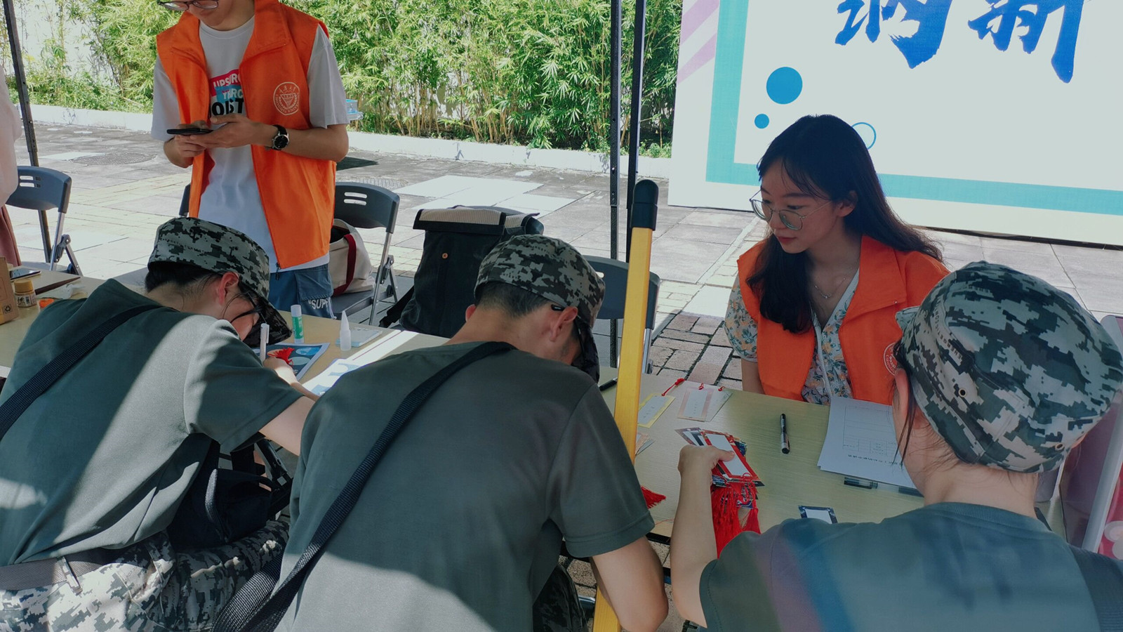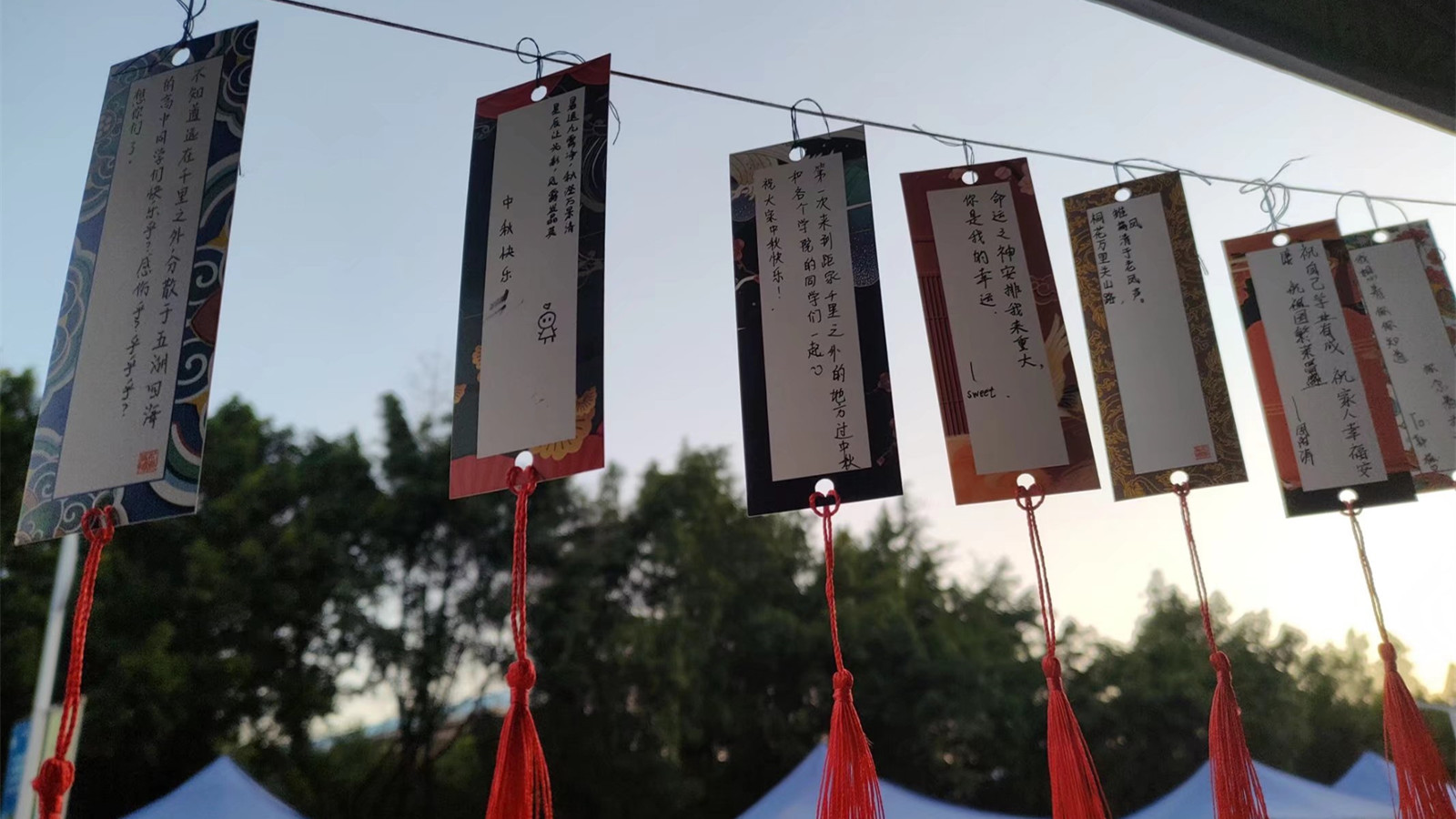 9月20日中午12:00,在工作人员提前搭好的棚子里,活动正式开始。晚上2021级同学解散后,时间宽裕的同学们参加活动的兴致十分高涨,将活动的棚子围了一层又一层。同学们都积极地参与了猜灯谜、对诗句、写祝福的游戏,并因此获得了抽奖资格,获得了材料易班提供的暖心奖品。工作人员还仔细地向对材料易班感兴趣的同学们介绍了材料易班工作站,让更多人了解到工作站服务同学的宗旨,起到了一个很好的宣传作用。