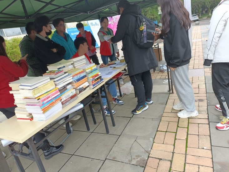现场同学们捐赠了许多适合小员工阅读学习的书籍,积极参与书评的撰写并在相关活动QQ群中接受了书评录制的相关培训。此外,也有很多同学积极报名成为值守活动棚的志愿者,尽管这段时间天气较冷,但大家的心中是暖洋洋的。