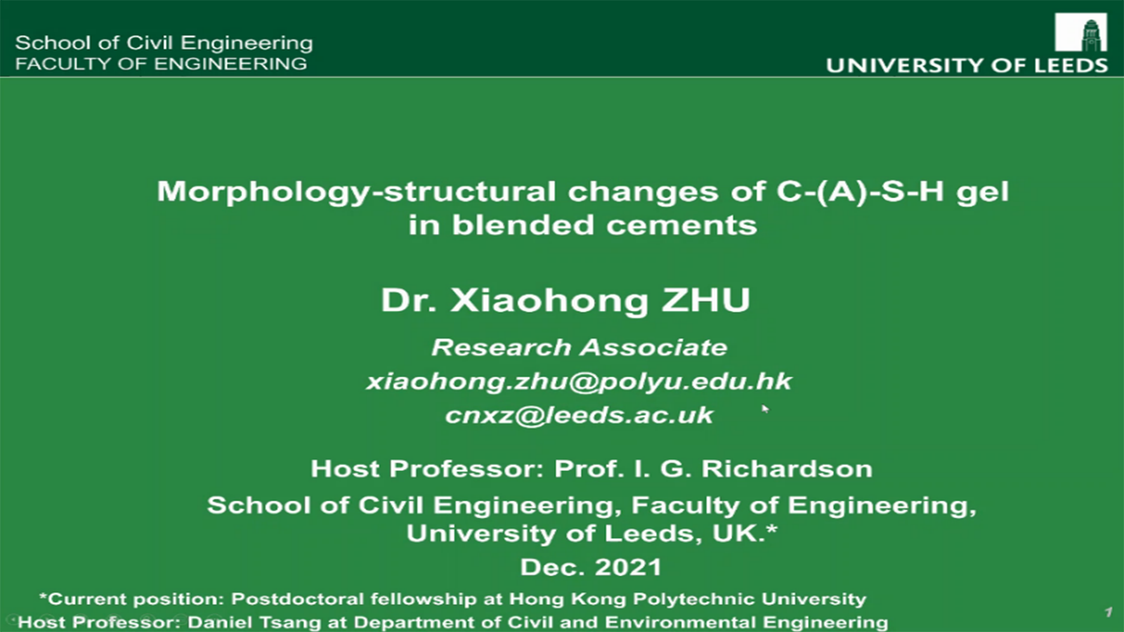 2021年12月9日下午15:00,好博体育2014级优秀硕士研究生,现香港理工大学博士后、利兹大学助理研究员朱效宏博士,应好博体育邀请,举办线上学术讲座,通过腾讯会议与好博体育建材系师生进行学术交流。会议由好博体育建材系主任王冲老师主持。此次线上学术报告还吸引了国内外其他高校的师生,超过160人参加了交流。
