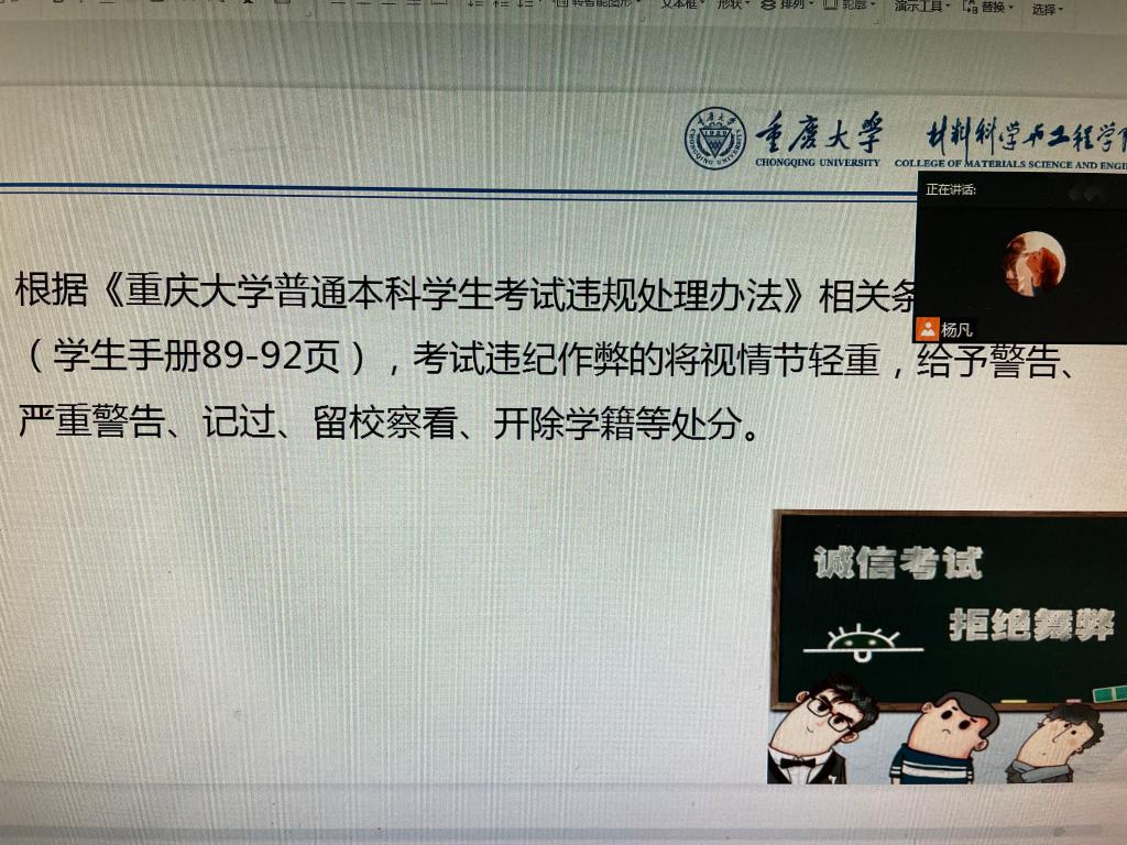 会议伊始,杨凡老师对于《好博体育普通本科生考试违规处理办法》进行了详细的讲解并提出了考试诚信要求。希望同学们在考试临近阶段,合理安排好作息,注意劳逸结合,做好考前压力排解,严格遵守考试规定,诚信考试。