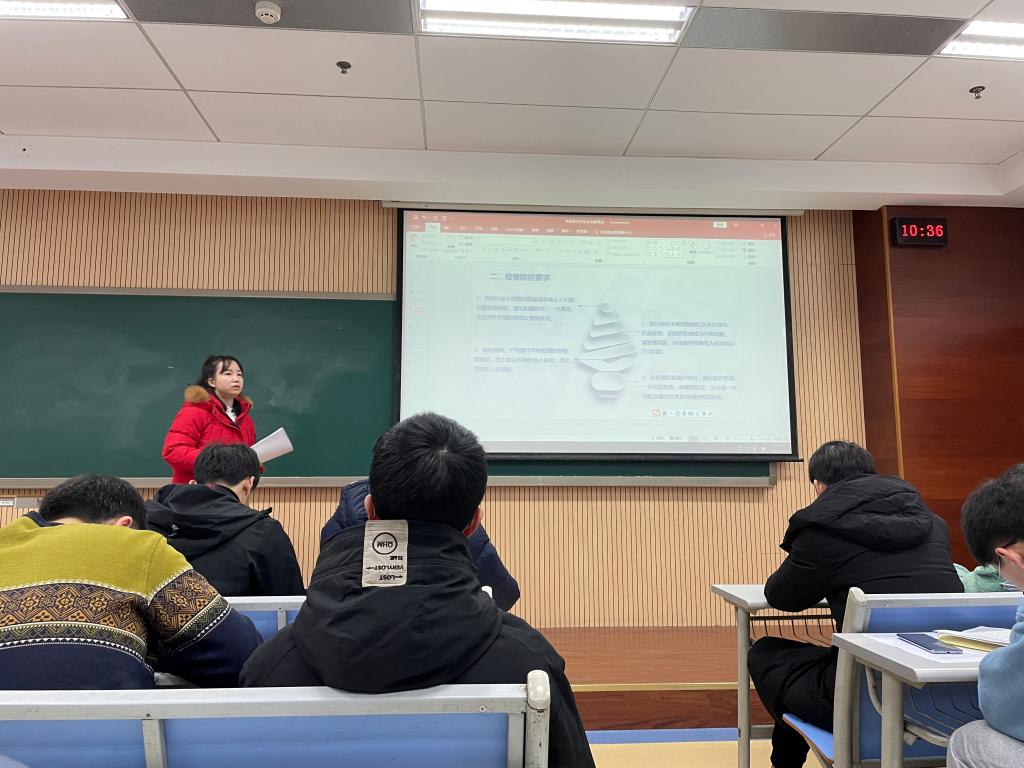 会议伊始,杨凡对寒假留校的同学在日常管理、疫情防控、防电信诈骗、宿舍安全等四个方面提出了要求。特别强调了留校的同学每天需按时归寝,非必要不离校、不得前往中高风险地区等重要安全事项。