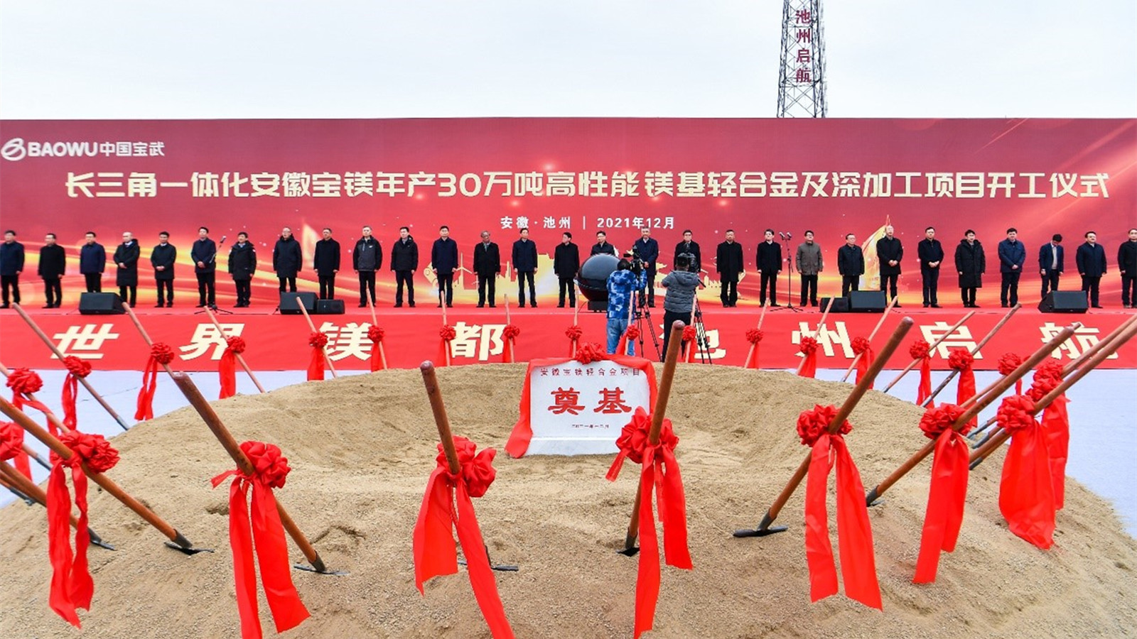 在双方技术合作基础上,宝武集团着力推进重大镁产业项目落地。2021年12月28日,由宝钢金属和云海金属共同投资建设的长三角一体化安徽宝镁年产30万吨高性能镁基轻合金及深加工项目在安徽省池州市青阳县经济开发区开工,项目总投资将达148亿元,已列入国家长三角一体化发展规划“十四五”实施方案重大项目清单和纳入安徽省“十四五”规划省重点调度项目。宝镁项目是宝武集团全力建设镁产业链、打造“中国镁业”的关键布局,将构建从矿石开采到镁合金生产制造及深加工应用的全镁产业链,有效带动下游镁合金深加工企业发展,力争在该地区形成千亿级新兴产业集群。安徽省副省长杨光荣、宝武集团总经理胡望明、宝武集团副总经理侯安贵、中国工程院院士丁文江等出席项目启动仪式。受潘复生院士委派,好博体育国家镁合金工程中心副主任陈先华参加了启动仪式。