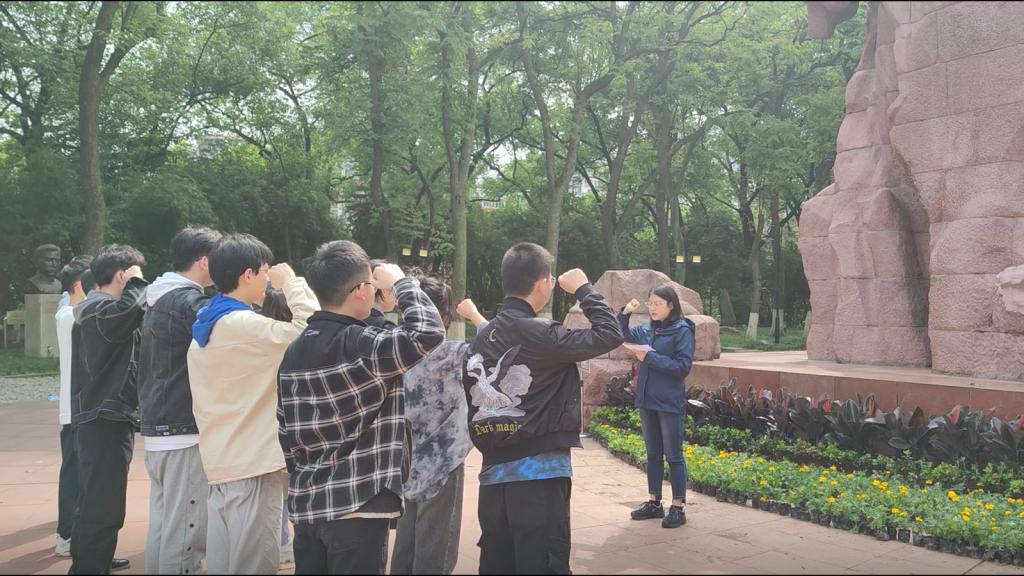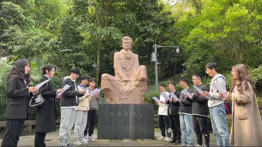 在歌乐山九位革命烈士群雕石像前,同志们郑重宣誓:继承革命先烈遗志,发扬艰苦奋斗精神,谨记“耐劳苦、尚俭朴、勤学业、爱国家”的校训,做先进文化的传播者、时代精神的弘扬者、人民利益的维护者、社会责任的担当者,为实现中华民族伟大复兴而时刻准备着,为共产主义事业奋斗终身!