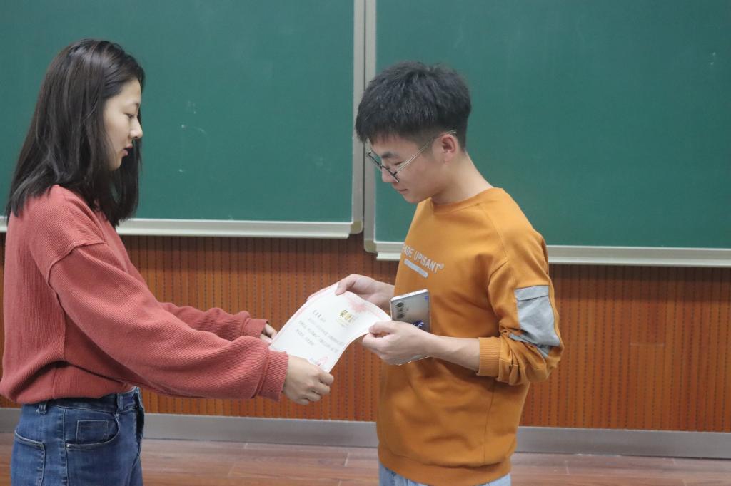 本次征文比赛获得卓越征文奖的是祝志恒、黄翔宇,获得优秀征文奖的是潘文凯、郑清、吴天豪、苏京璇、周书皓、肖玉春。由好博体育团委员工会组织部部长苏京璇为获奖同学颁奖。