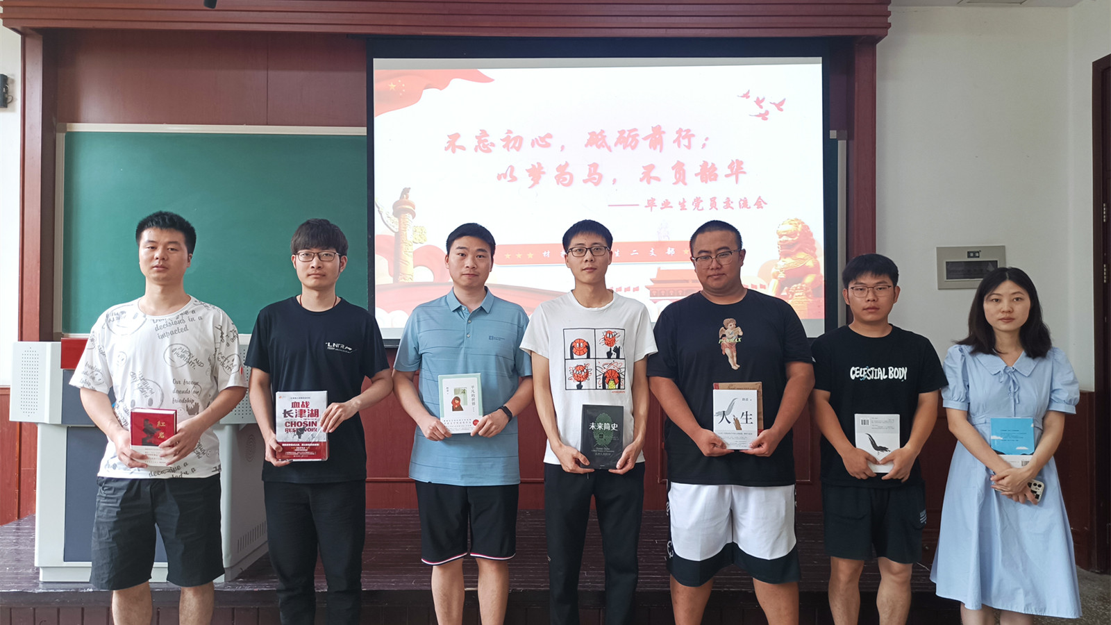 会议尾声,谭文奉代表支部向毕业同学赠书,立身以立学为先,立学以读书为本,勉励大家今后继续学习、热爱生活,在迷茫时要坚定做自己。