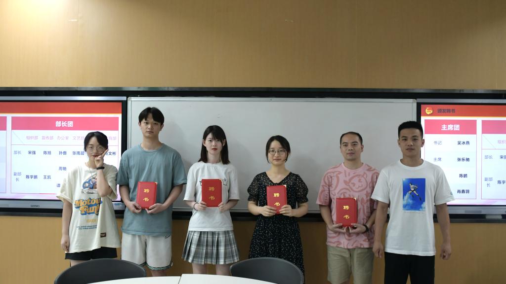 随后21届主席团、各部门部长为新任干部颁发聘书,并合影留念。