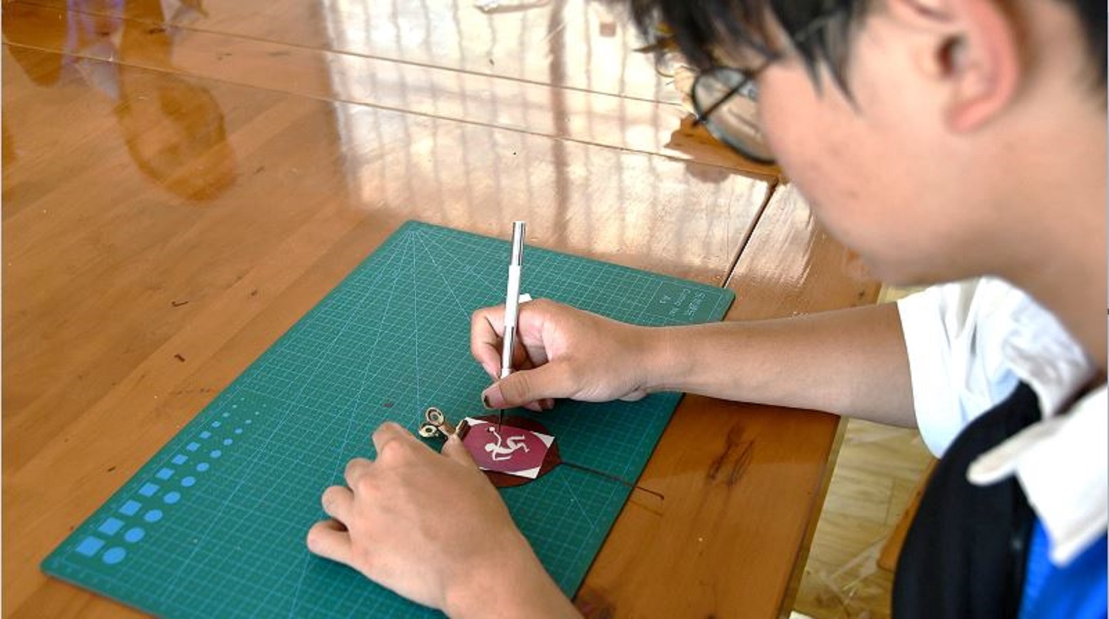 (图为实践团队员亲手体验红叶雕制作过程)