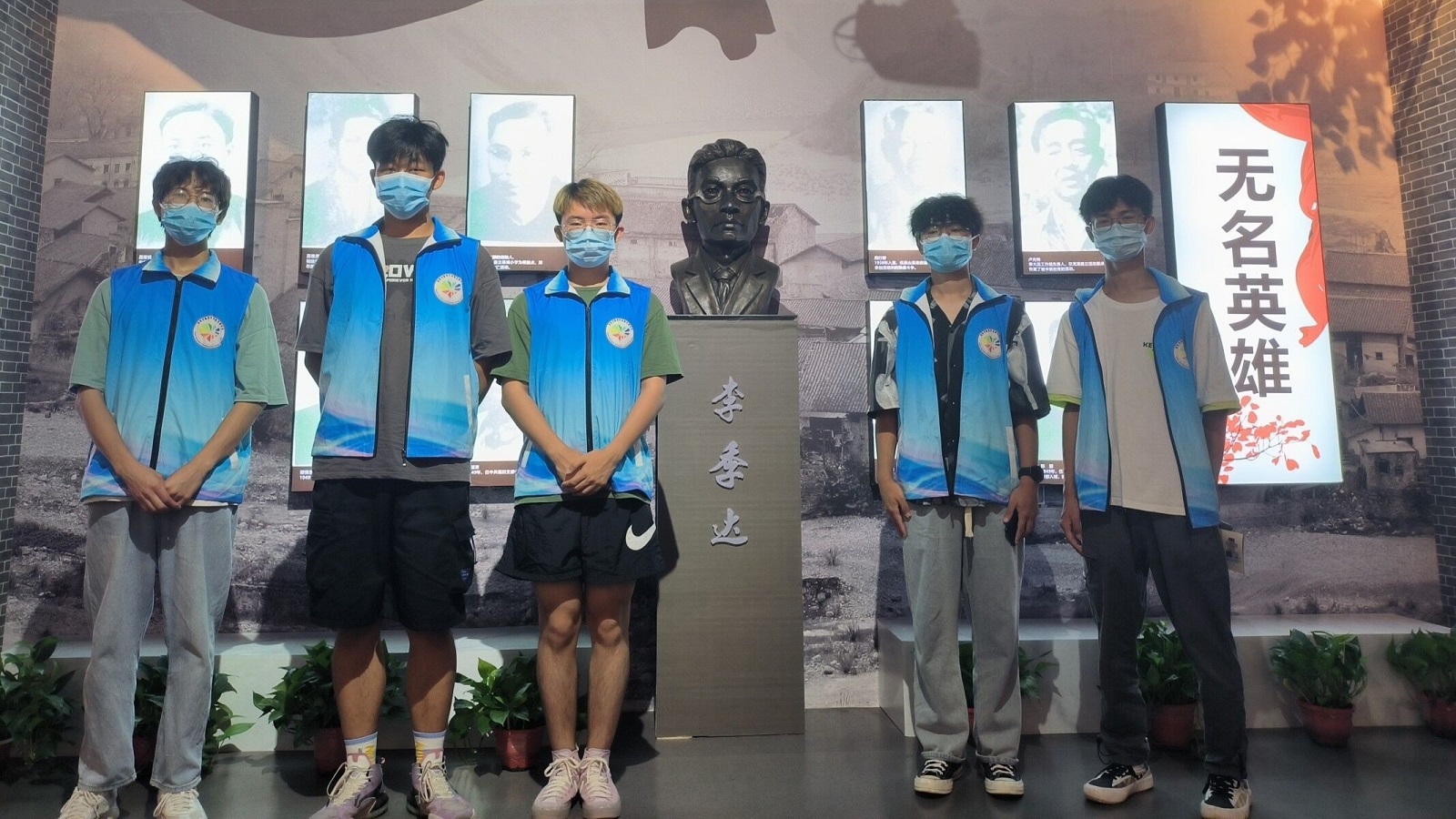 (图为“星衍巫山”实践团队员们与李季达烈士合影)