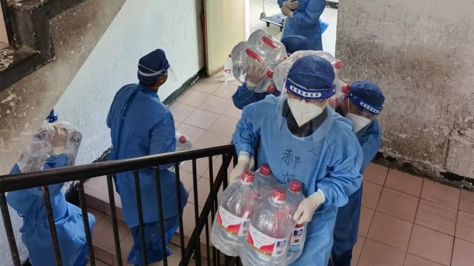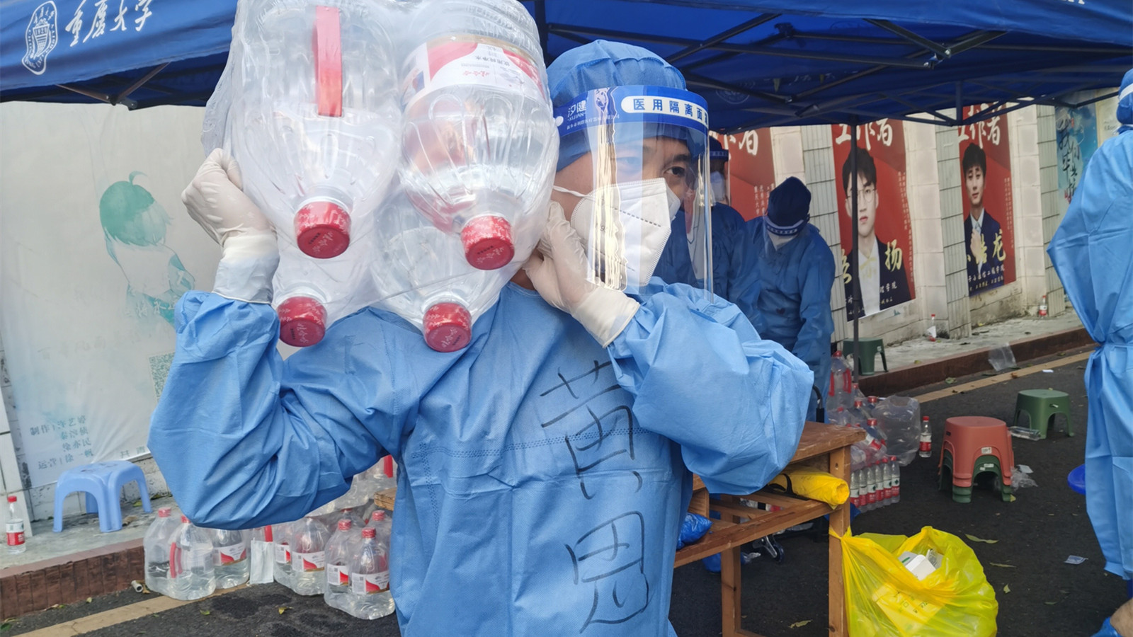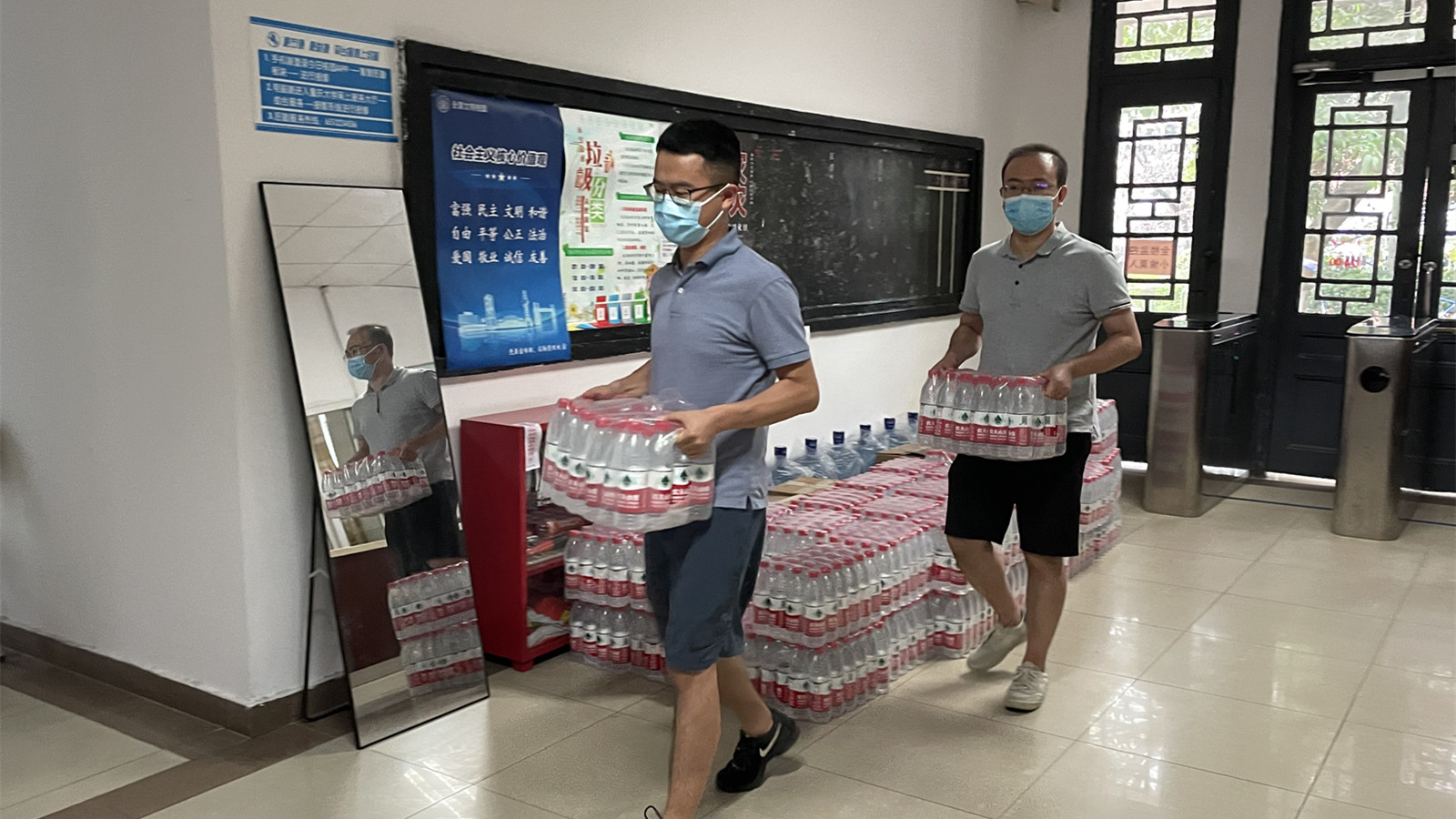 “看到学校紧急征集志愿者的通知,我也没有想太多就报名了。希望能为学校的防疫工作出点力,疫情不结束,我们不下岗。”在宿舍物资配送中,学院组织员黄思每天穿着密不透风的防护服,冒着高温酷暑,为员工送物资,一趟下来全身上下没有一处是干的,他不惧风险,冲锋在前,用实际行动践行党员的担当与使命。