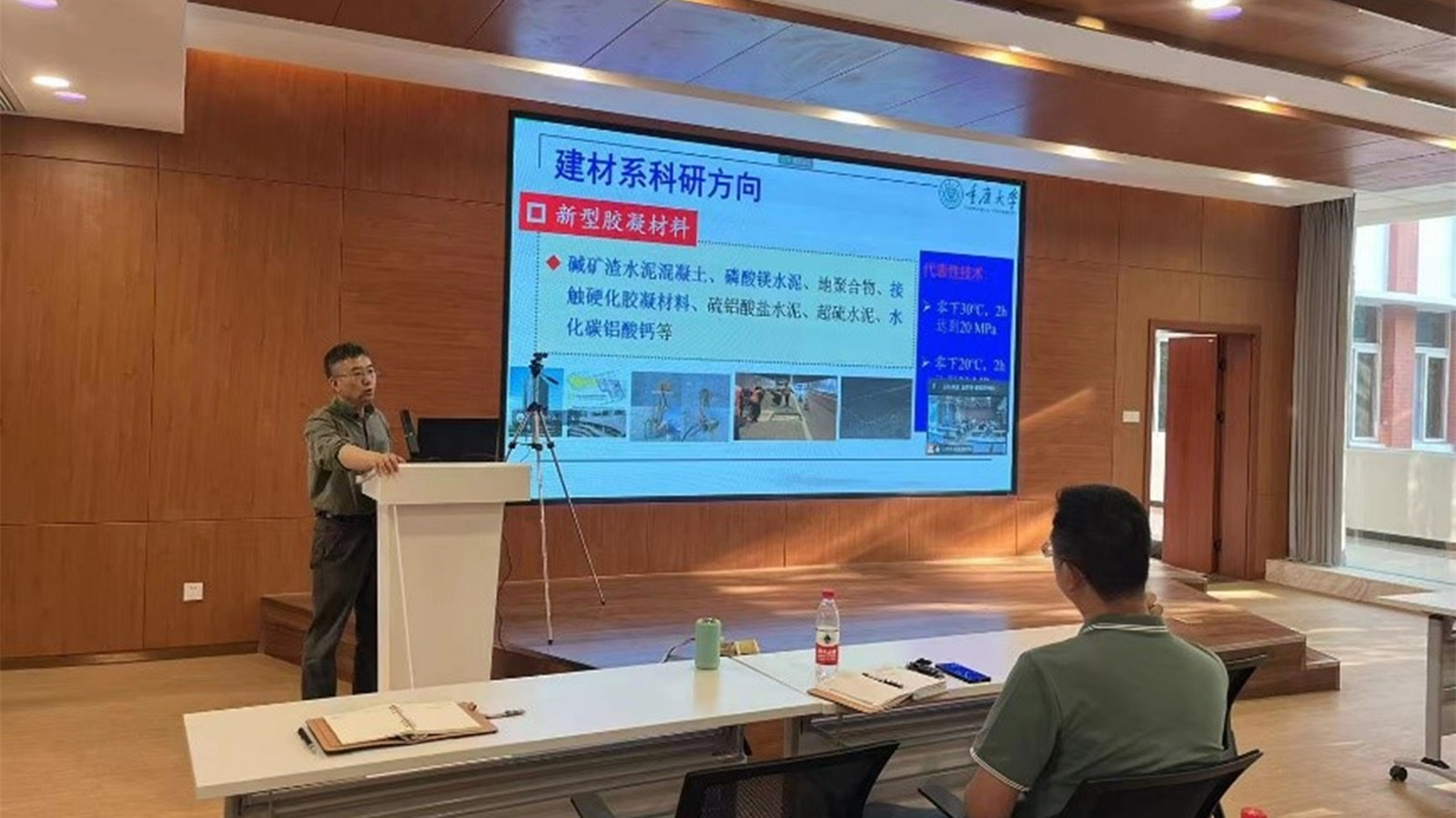 接下来,建材系主任王冲从建材系发展历史、科研教学平台,专业科研方向等方面进行了详细介绍,提出将以党建为引领,发挥组织共建优势,与69241部队在人才培养、科学研究等方面进一步加强合作交流。