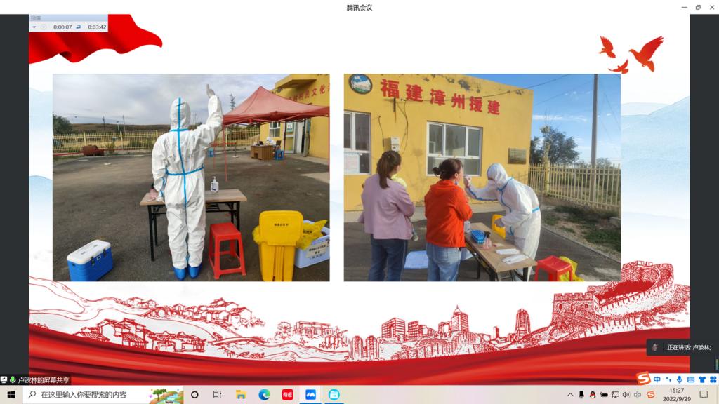 接着卢波林同志则以“防旱抗旱”主题进行了分享汇报。他结合今年南方多地持续高温干旱,重庆地区高温引发山火等,赞扬了灾难面前,民心向党,党群一心,党员冲锋在救援一线。此外,他还结合自身暑期在家乡参与到核酸检测工作当中,谈到了党员们服务社区的相关工作。