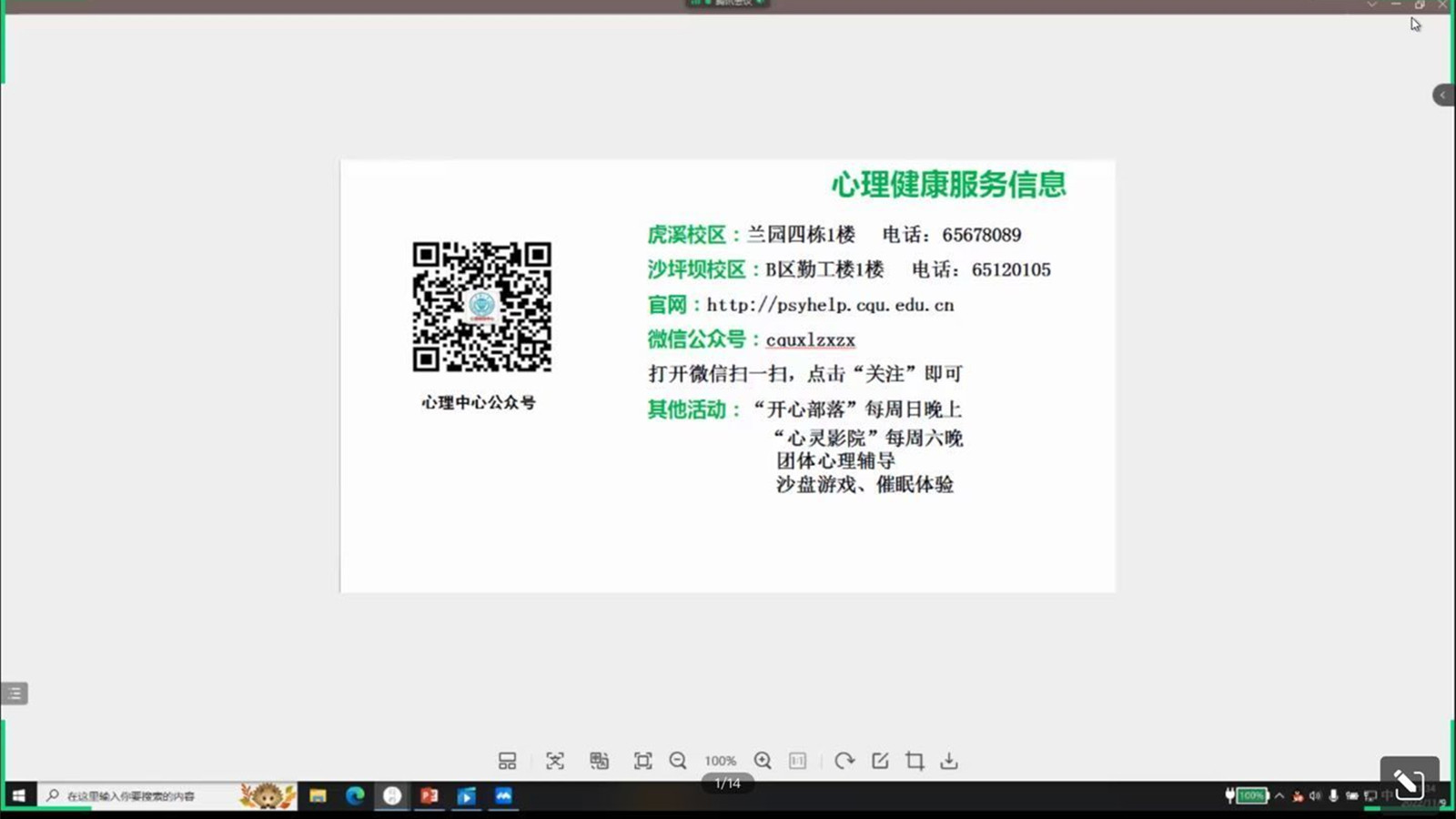 兼职辅导员杨灵和姜涛谈到,当前重庆疫情散点多发,老师和同学们都要众志成城,携手打好疫情防控攻坚战。他们从辅助学院防疫工作角度,就工作中如何高效配合学院学校落实安全防控,做了说明。最后他们谈到,同学们在面临学习和生活、心理等方面的问题也可以及时向老师们反馈,我们共同解决困难。