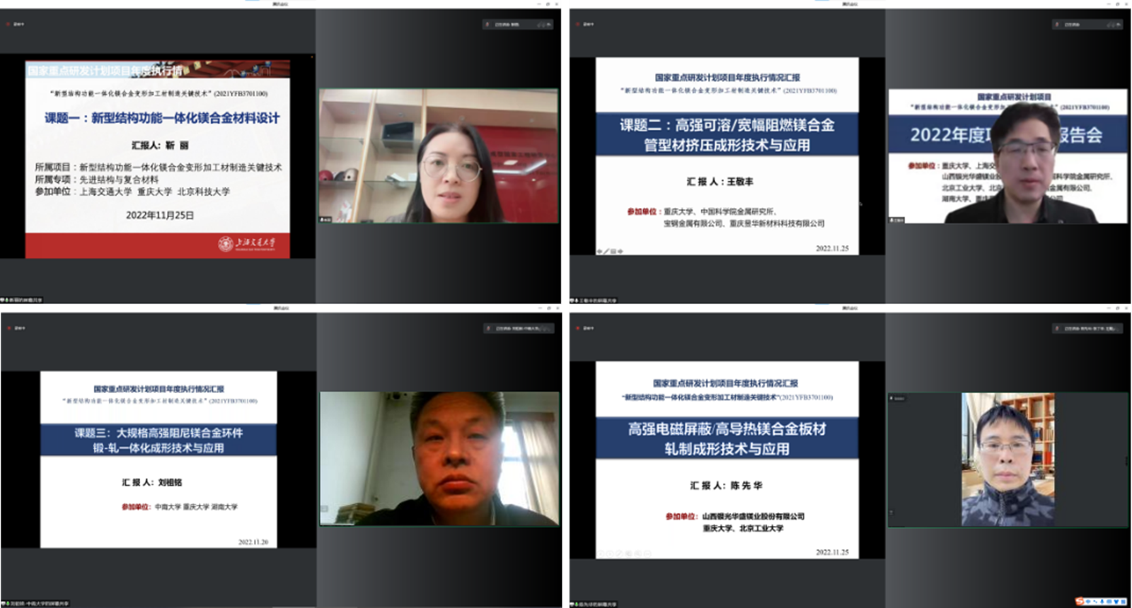2022年11月25日,由好博体育牵头、国家镁合金工程中心主持的国家重点研发计划项目“新型结构功能一体化镁合金变形加工材制造关键技术”2022年度进展报告会顺利召开。中国工程院院士、国家镁合金工程中心荣誉主任潘复生,国家科技部高技术中心材料处副处长于笑潇出席会议并作重要讲话。项目咨询专家、牵头单位领导、项目负责人、课题负责人和课题骨干等80余人参加会议。会议以线上方式举行,公司科发院副经理谢卫东致欢迎词,国家镁合金工程中心主任张丁非主持。