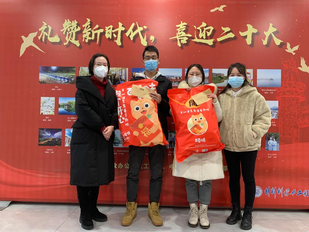 1月20日,在春节即将来临之际,为了让公司春节留校同学感受到“不是家,胜似家”的温暖,委副书记陈洁、辅导员杨凡老师看望慰问了春节假期留校员工,并给同学们送上了学院的新春大礼包和过年红包。