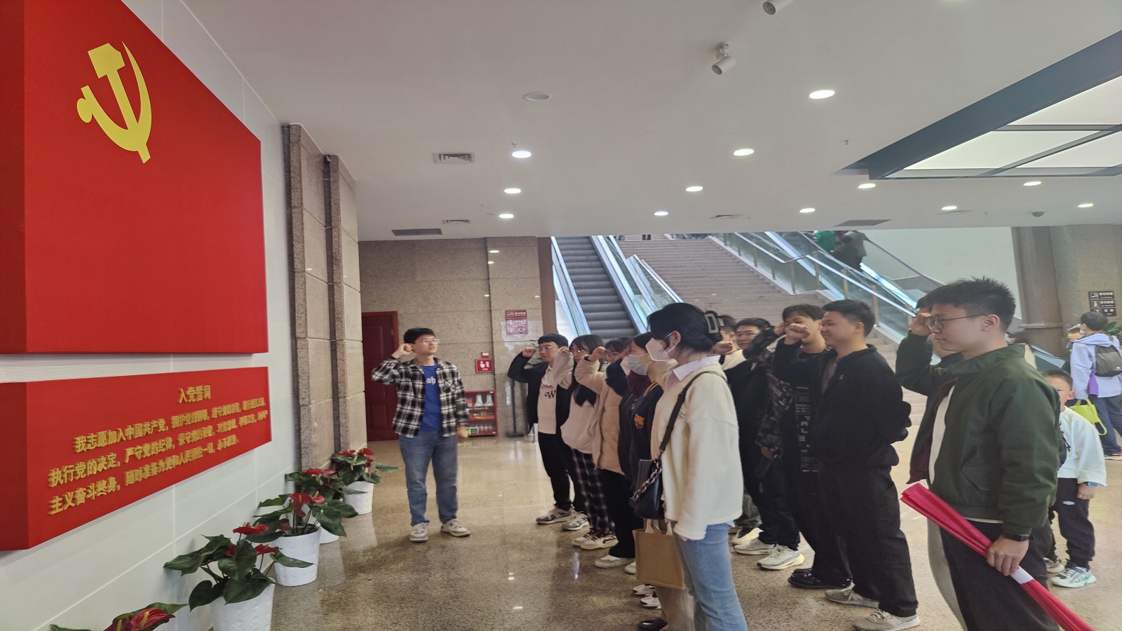 最后,在鲜艳的党旗面前,参加活动的同志们高举右拳、庄严宣誓,重温入党誓词,作出新时代研究生对党的庄严承诺。