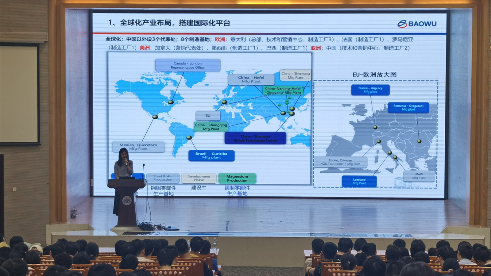 接着,宝钢金属人力资源部胡婷,对宝武镁产业布局及其使命与愿景做了讲解。她从企业发展历程,到企业人文关怀,向参会的同学展示了一个激情与奋斗并存的中国‘镁’业公司,最后她就企业招聘需求和岗位胜任力给在场同学们做了解读。