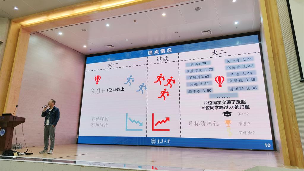 会议后半段,任超老师从五一安全教育、寝室卫生、学风建设、学业成绩、校违纪处分办法等方面做了讲解。特别是他谈到经过师生大半年的努力,2021级学风班风得到了较大改善。他以大一下和大二上的成绩做对比,剖析了数据增长背后大家共同的努力,他对全体同学在学业上取得的进步与成绩表示祝贺,他强调2021级将继续以学业指导为重点,为培育优良学风提供资源保障。他勉励大家要珍惜宝贵的大学时间,要认识到大二下作为大学分水岭的重要性。他希望2021级材料同学们要对自己狠一点,要主动走出舒适区,要做到“四破四立”,用奋斗书写青春,用自己的成就描绘当代“材料人”绚丽的未来!