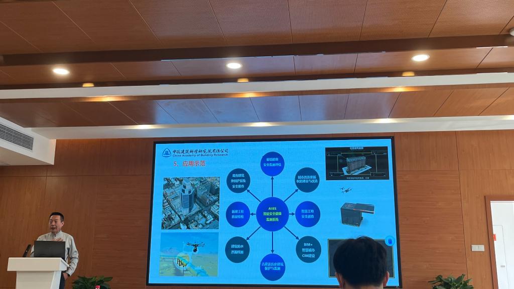 黄靖教授以“建筑外围护系统安全健康智能监测技术研究新进展”为题,从研发背景、技术支撑、实际应用等方面向大家介绍了建筑外围护系统智能监测技术。该研究针对建筑外围护系统开裂、空鼓、脱落等潜在安全隐患,以及传统检测方法存在的“上不去、说不清”等问题,利用无人机搭载自有专利技术的高频雷达、敲击回波、红外、可见光装备,可以高效、快速、定量化的揭示建筑外围护系统的潜在缺陷,并建立可视化的建筑三维模型、植入定量化的安全健康缺陷、形成建筑数字化智能安全健康管理档案系统。目前已成功应用100余万平米的工程检测,为城市建筑安全健康体验和数字化管理提供有效手段。
