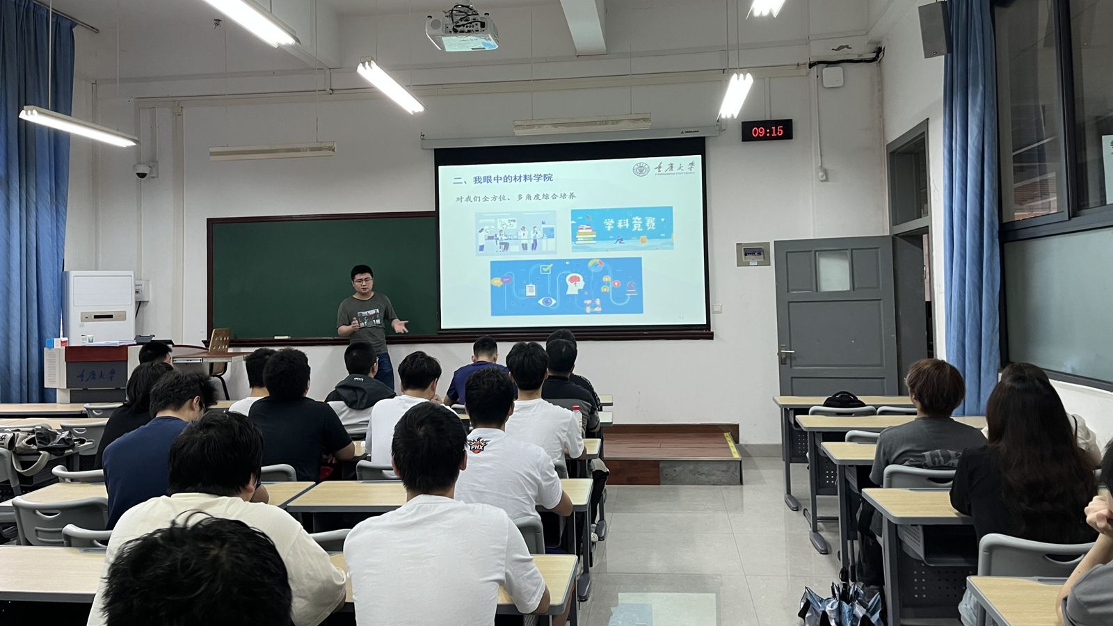 佘加就材料科学系的历史沿革、基本概况、团队力量做了概述,让同学们对于材科专业有了更深入的了解和认识。他详细讲解了材料科学的基础理论、主要研究领域和技术应用,说明了建设材料学科的重大意义和发展前景,让本科2021级员工对这个学科有了更加直观和全面的了解。