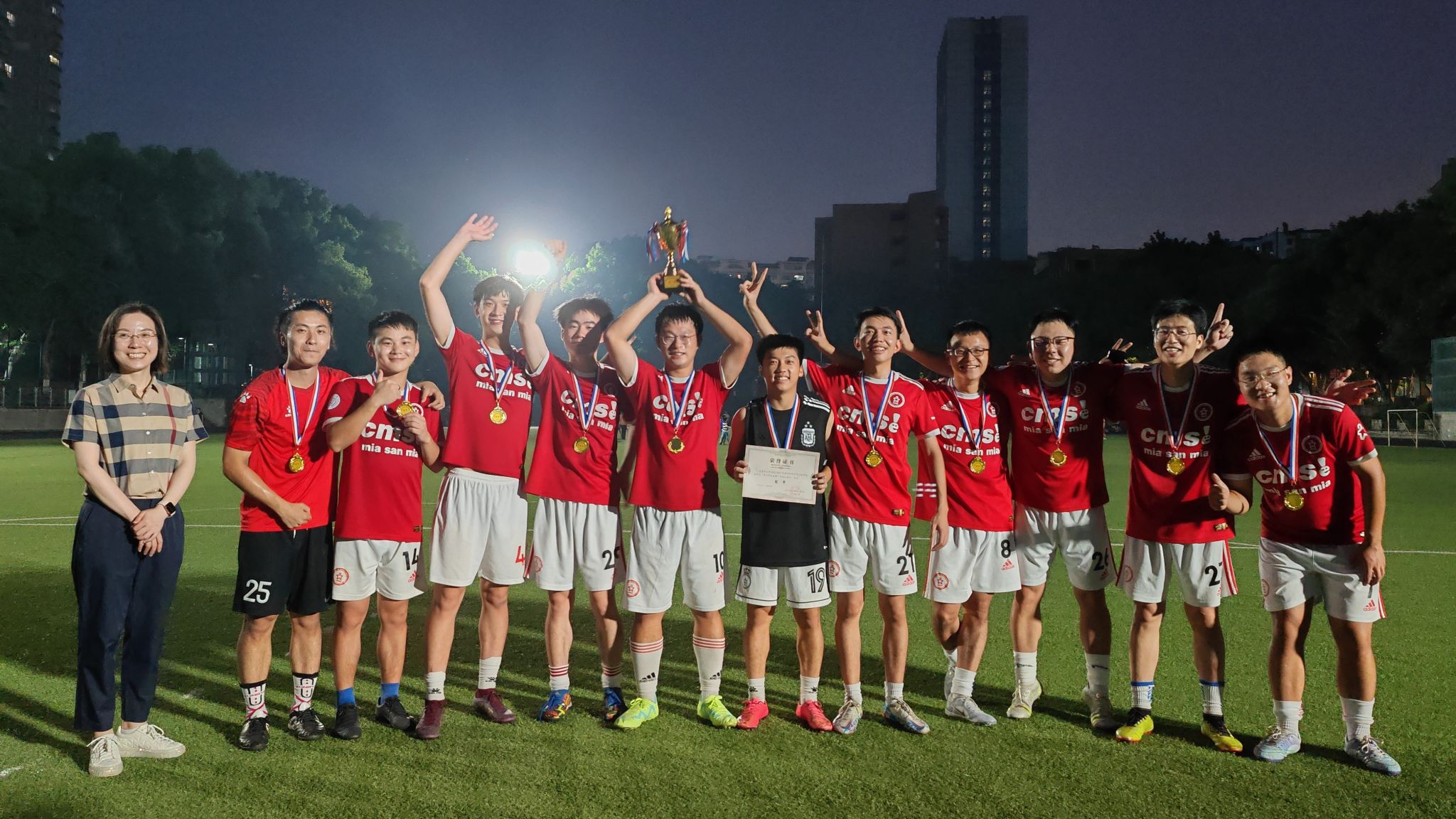比赛结束后,公司党委副书记、纪委书记陈洁为冠亚军以及最佳射手颁发奖项并表示祝贺。本次2023年师生杯足球比赛本着“情谊第一,比赛第二”的精神顺利落幕。