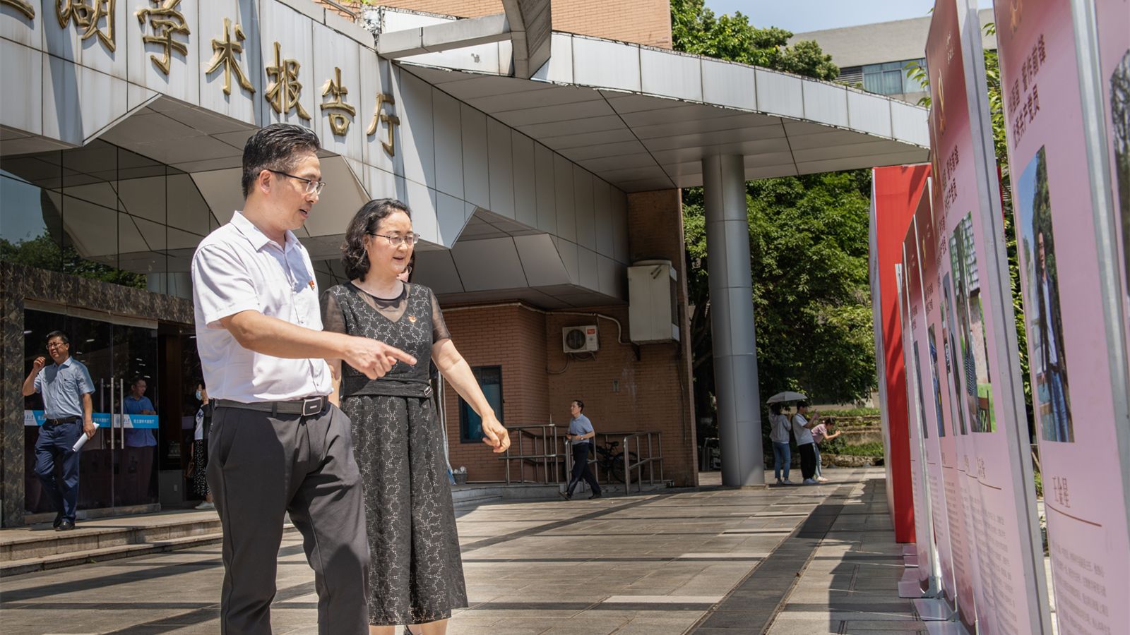 6月27日下午,公司党委副书记冯业栋,党委常委、组织部部长李学静等领导在A区民主湖报告厅参观好博体育优秀党支部、优秀党务工作者和优秀党员风采展。