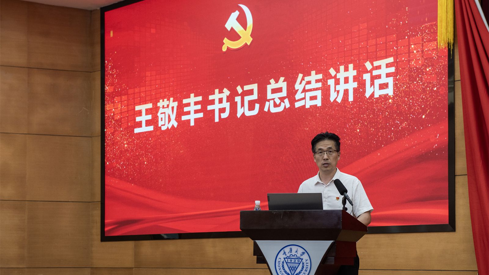 王敬丰以“以中国式现代化推进中华民族伟大复兴”为主线,为全体毕业生党员上了一堂生动的党课,勉励全体毕业生党员要胸怀祖国,扎根中国大地,不负党和人民的期望,满怀信仰和豪情为党和人民奋斗终生。