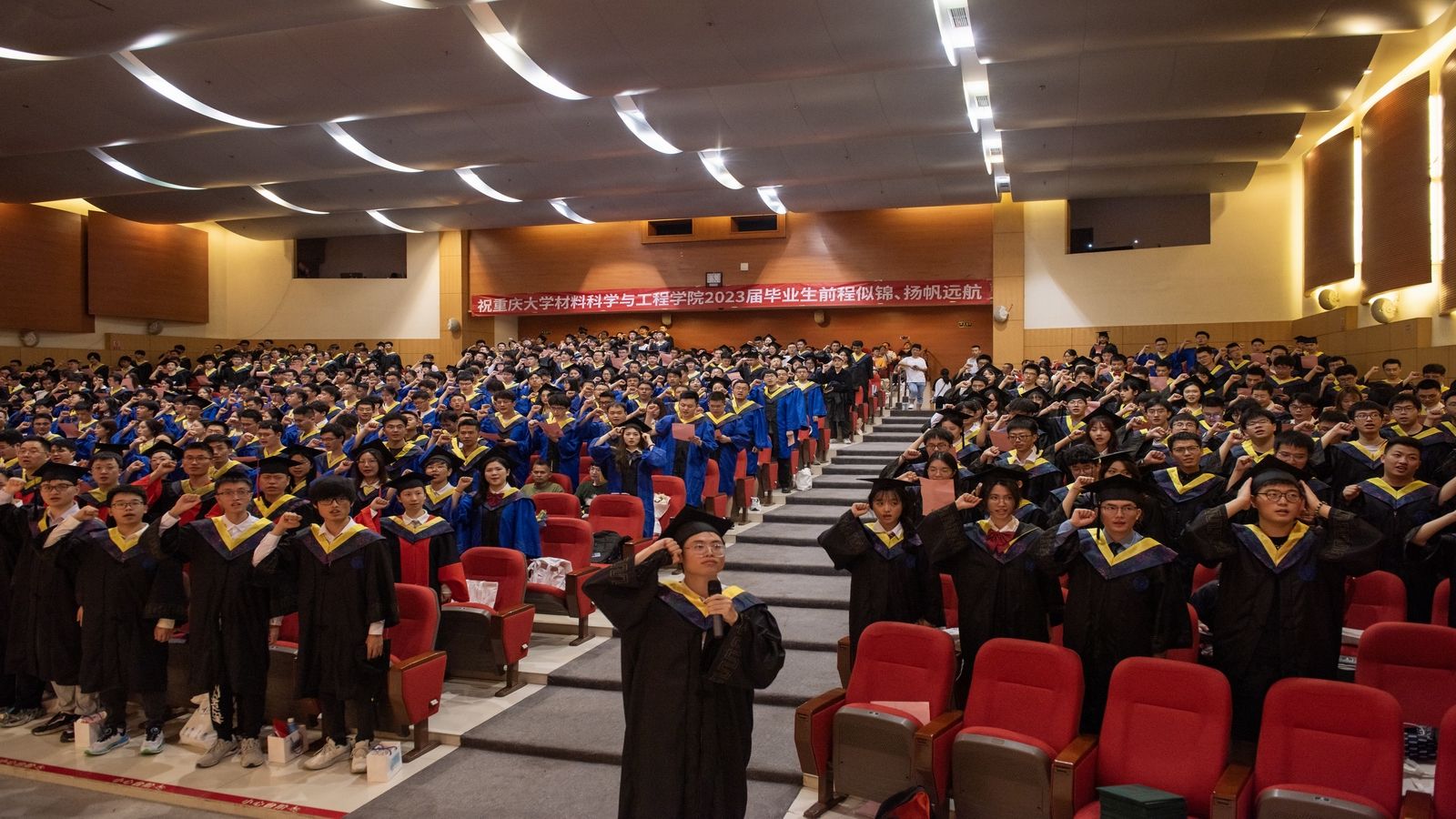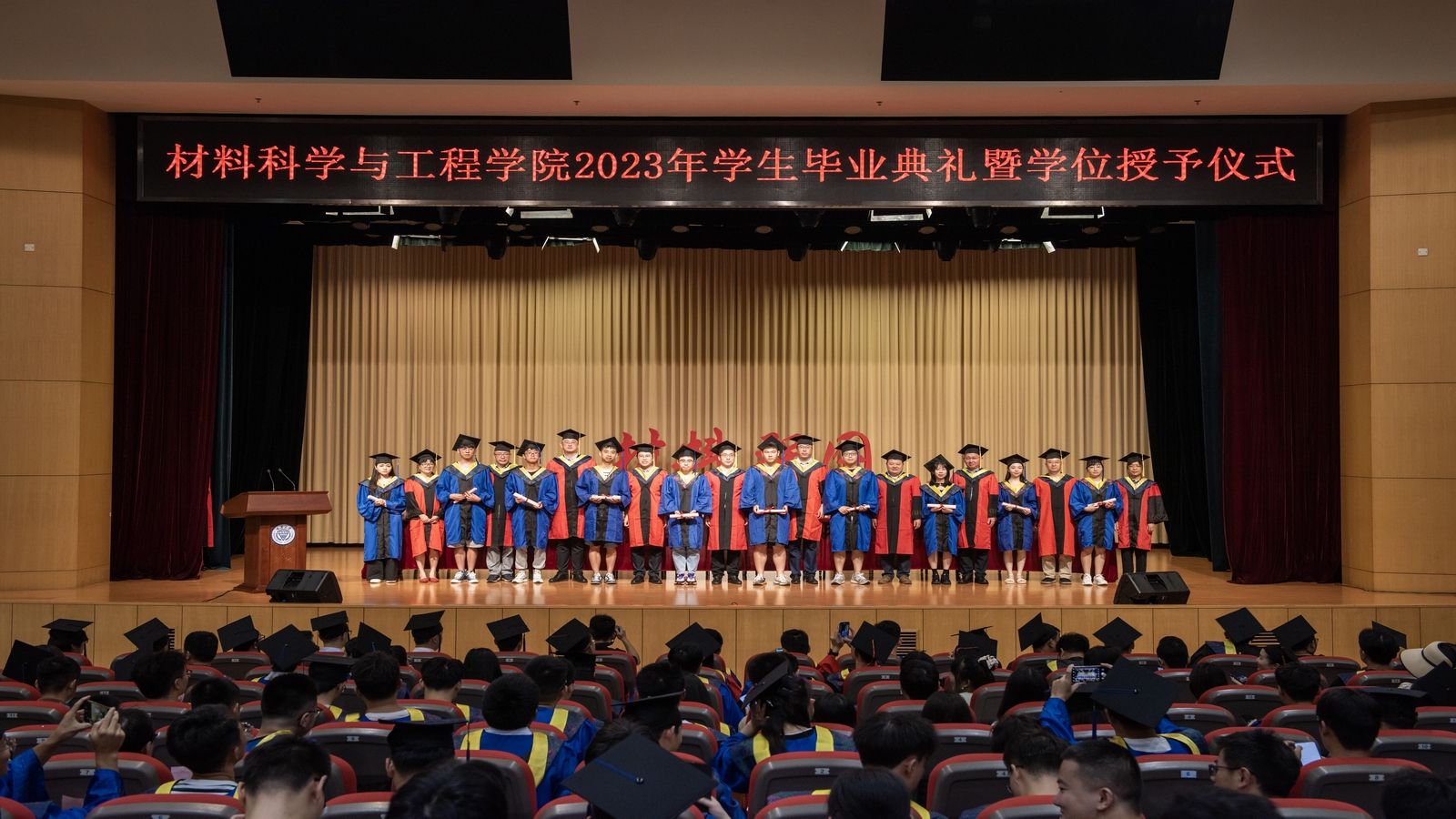 王敬丰致辞,他强调2023届毕业生是经历了疫情考验的优秀人才,寄语同学们胜不骄,败不馁,戒骄戒躁,孜孜以求,保持终身学习的势头。他希望材料学子永葆赤子之心,坚定报国之志,勿忘桑梓之情,爱校爱国,铭记母院教诲。他提出同学们要做中华民族传统美德的继承者,做探索真理、勇于创新的开拓者,做“材料强国”精神的实践者,不断为强国建设、民族复兴伟业添砖加瓦、增光添彩,成长为能肩负历史使命的时代新人。