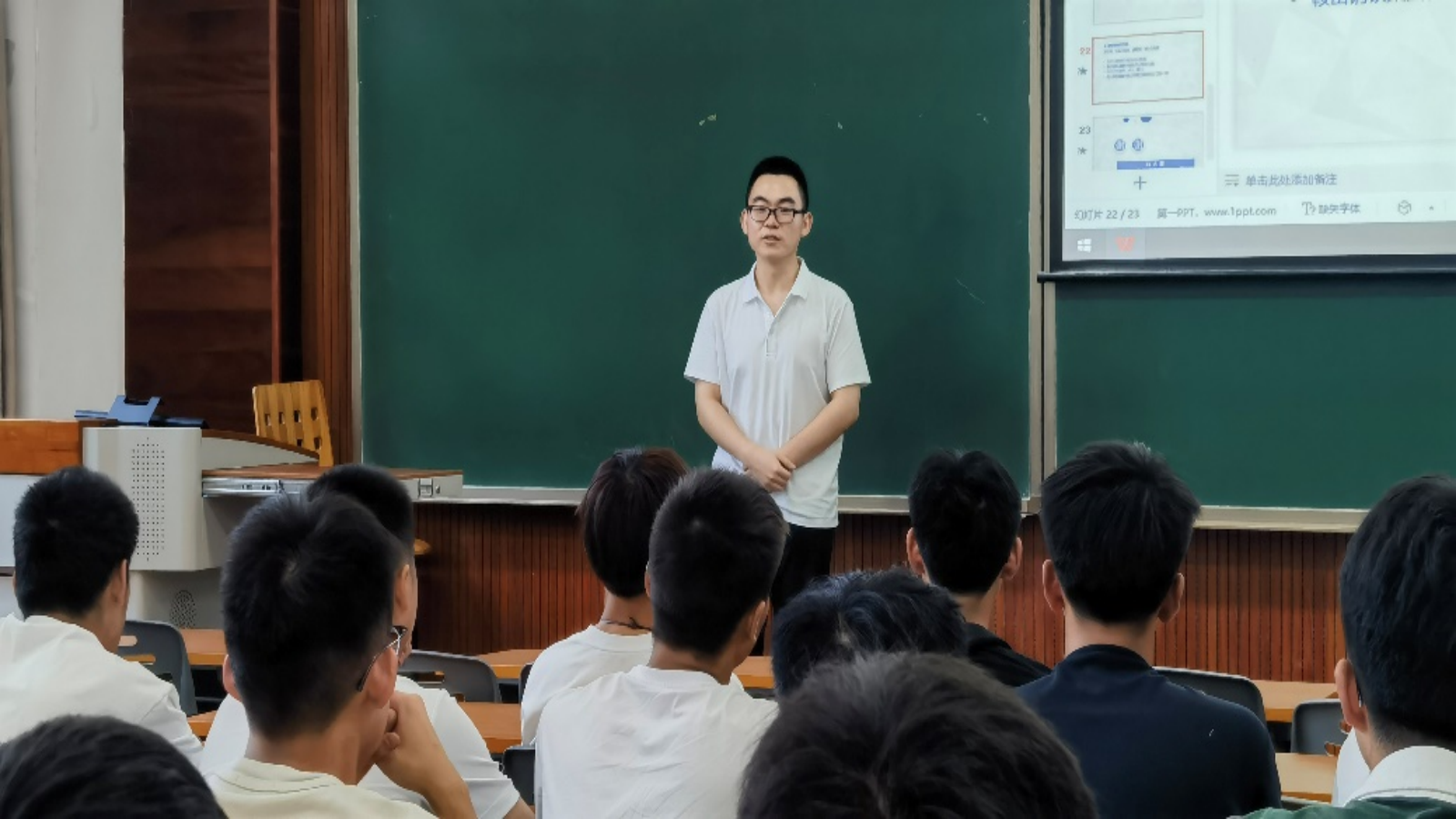 随后,研究生兼职辅导员王晋分享了自己在学习和生活中的经验教训,鼓励同学们要勇敢面对挑战,积极克服困难。他还强调了时间管理的重要性,提醒同学们要合理规划自己的时间,把握好学习和休闲的平衡,健康快乐地度过大学时光。