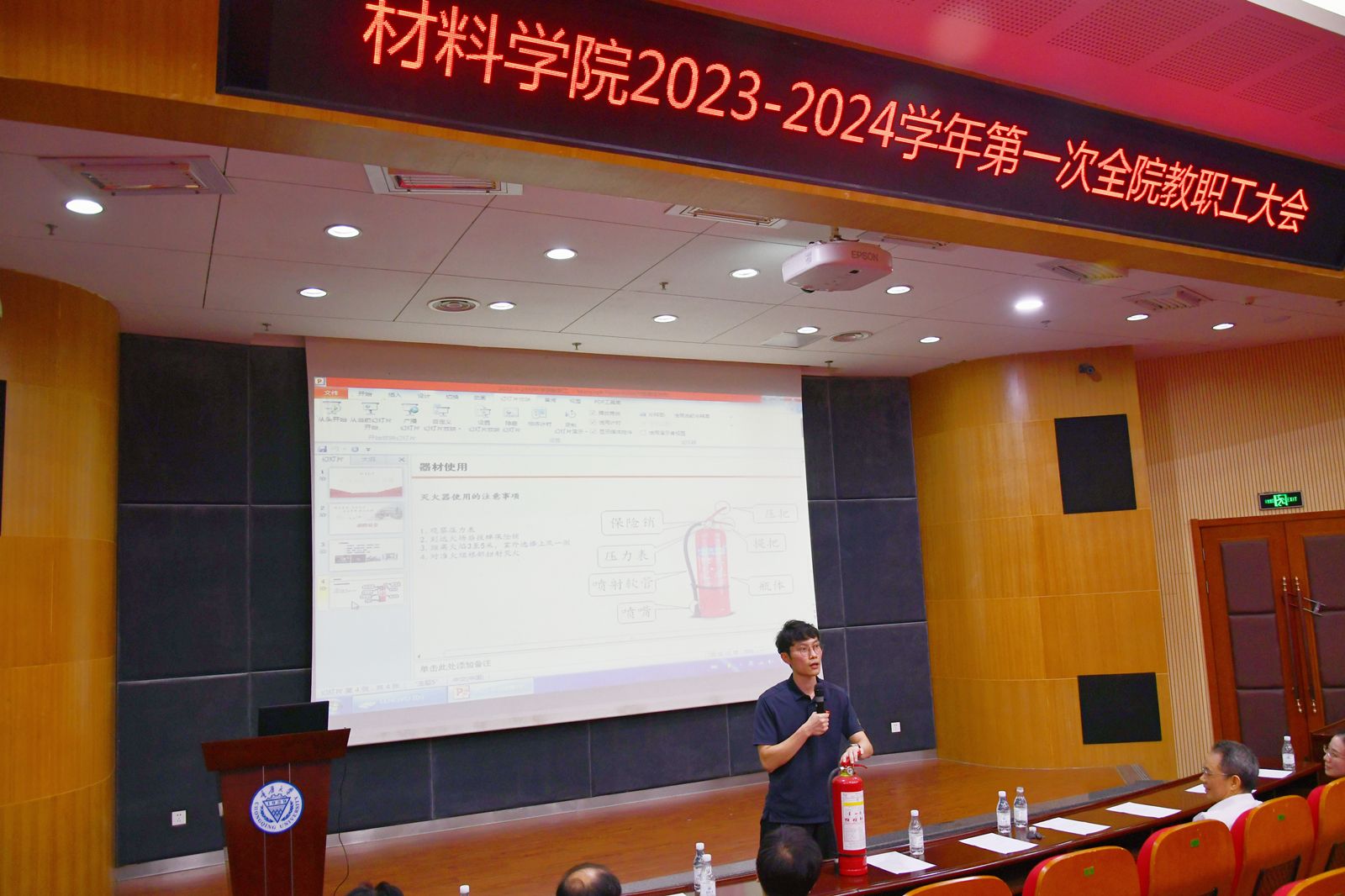 公司邀请到保卫处安全教育科科长雷泽来作消防安全教育。他结合实际案例对消防安全和校园安全进行了生动的讲解,并现场演示如何正确使用灭火器。