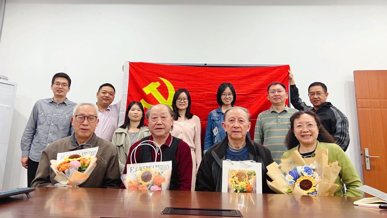 金秋时节,丹桂飘香。2023年10月24日(农历九月初九)建材装饰教工支部的党员教师们与公司退休职工第二党支部的退休党员代表彭小芹、梁纪新、陈剑雄和谢振国老师一起开展了“党群共联动 爱满重阳节”主题党日活动,为退休党员送去节日的祝福和慰问,并一起回顾历史、交流感情、共叙发展。