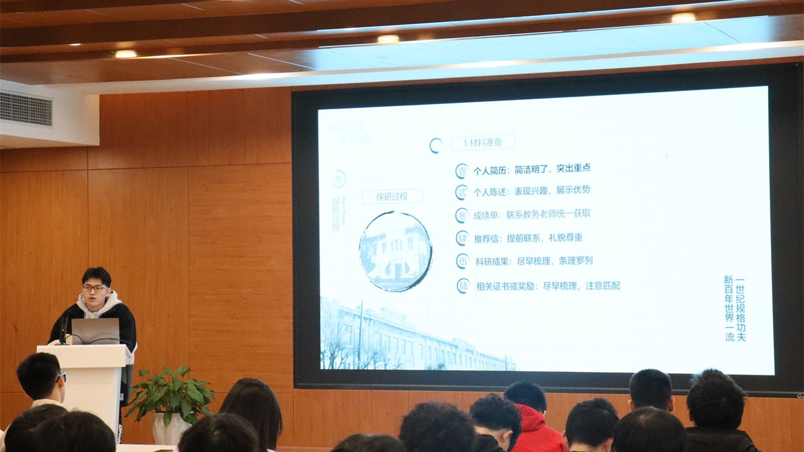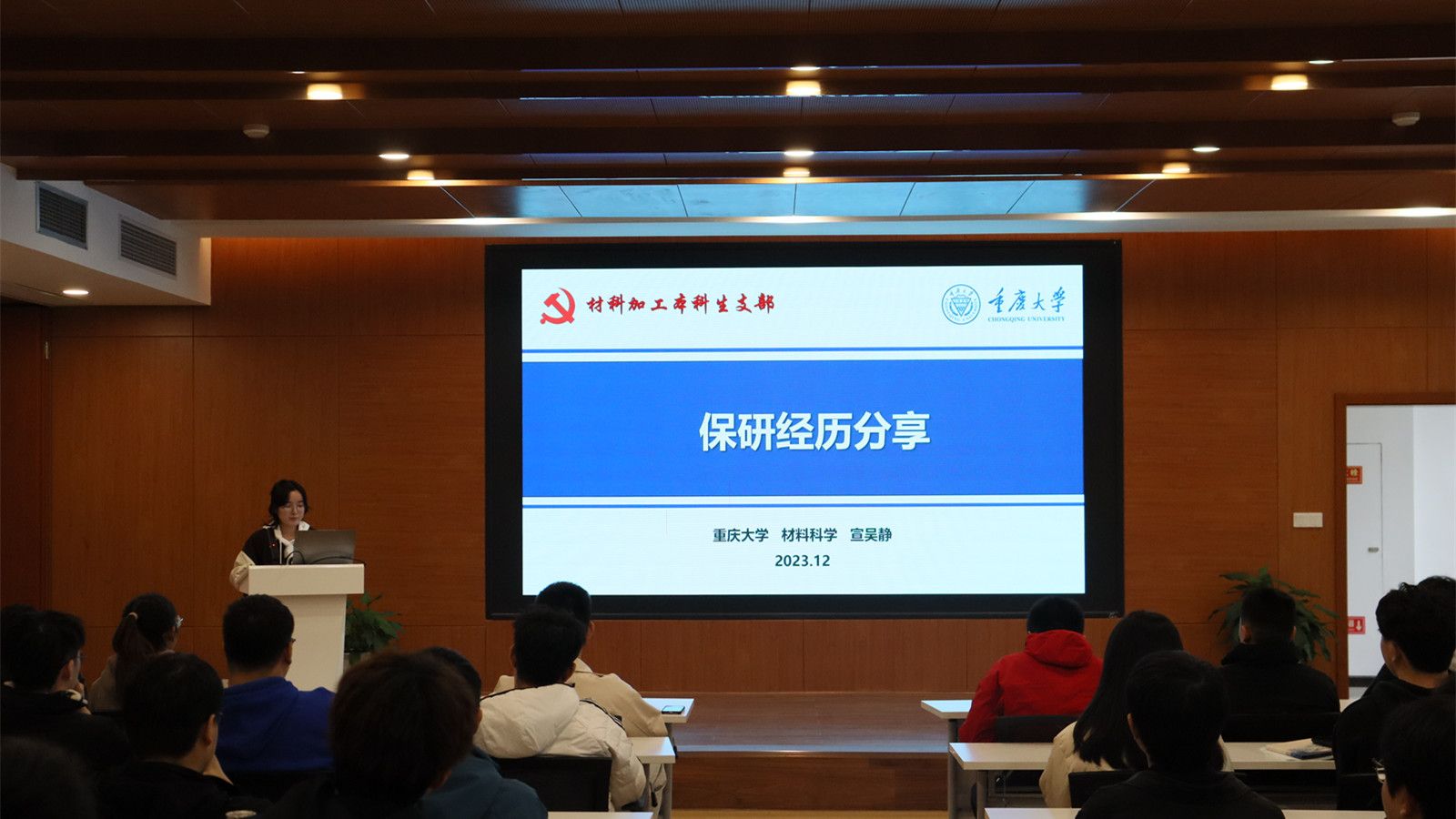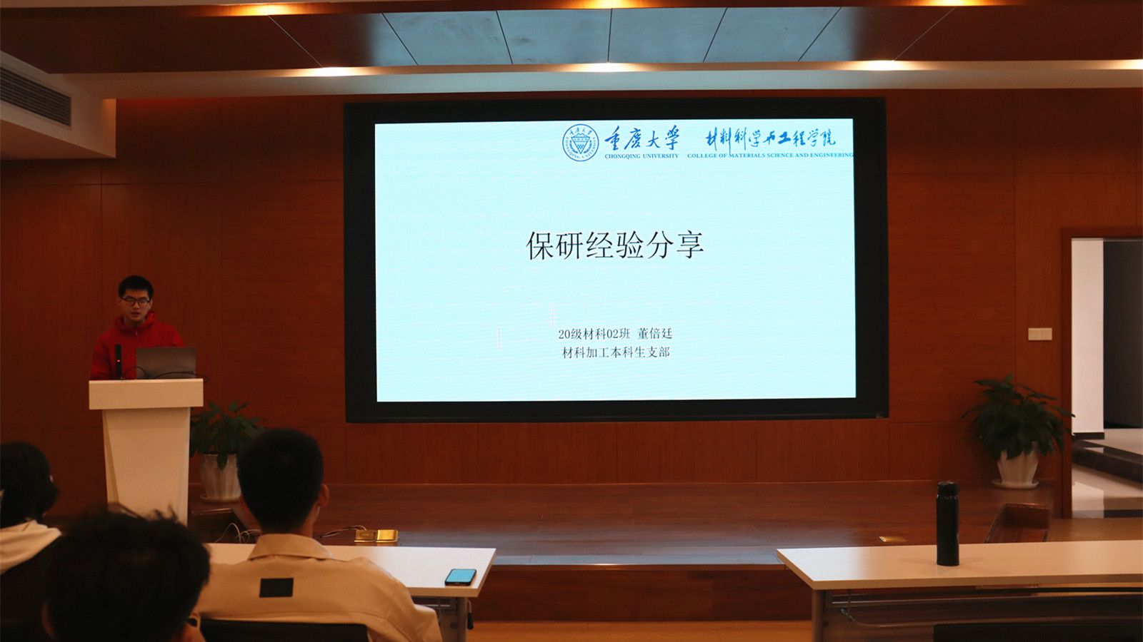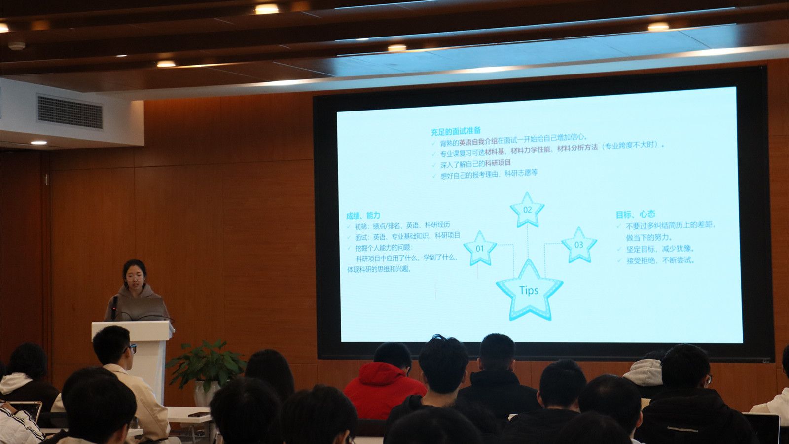2023年12月14日,好博体育本科2021级组织了“材料强国·薪火相传”保研经验分享会。辅导员任超、兼职辅导员杨灵、姜涛参加。会议由杨灵主持。