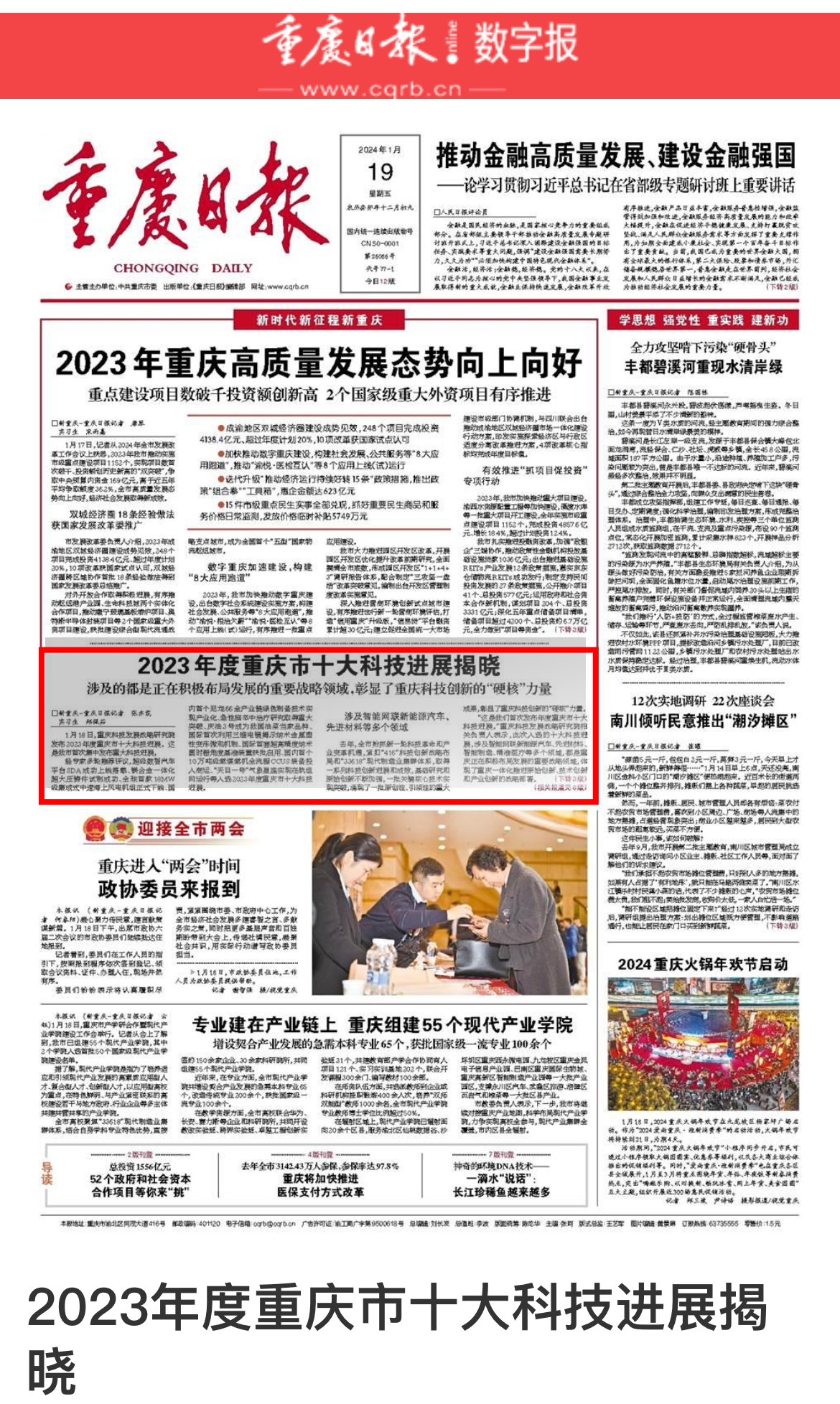 (《重庆日报》刊登“2023年度重庆市十大科技进展”)