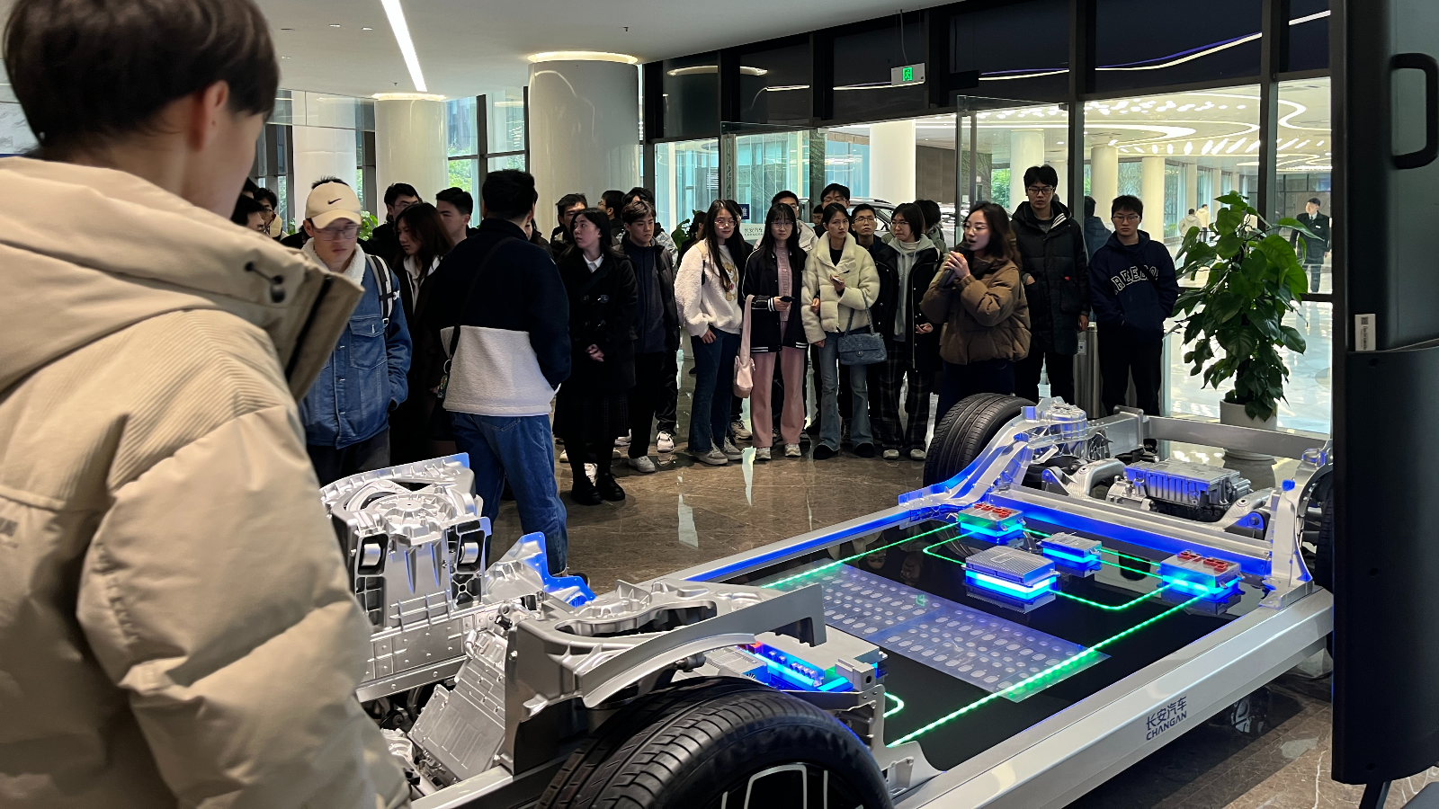 3月7日,职就中心组织开展第六届名企实践行—走进重庆长安汽车股份有限公司活动,来自材料、机械、资安3个学院的84名师生参加。实践团队先后参观了全球研发中心一楼展区、NVH实验室、二工厂总装车间。同学们积极热情参与,展示了对重庆长安汽车的浓厚兴趣。