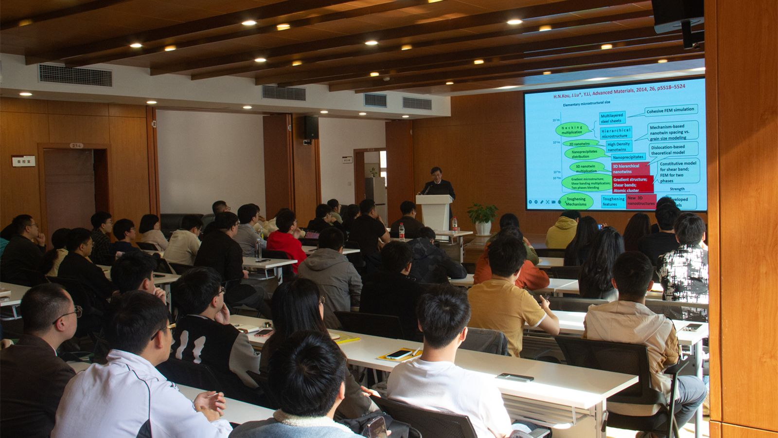 在讲座中,吕坚介绍了先进结构材料的应变非局域化设计和增材制造领域的最新进展。他指出,先进结构材料与应变非局域化的研究旨在解决结构材料在追求高强度与高韧性之间的平衡难题。近年来的研究主要集中在材料结构设计,包括化学非均匀性、拓扑和物理非均匀性。对于晶体材料,主要关注位错工程、多级纳米孪晶等;对于非晶材料,主要关注其力学性能、应变及局域化特性的调控,例如如何让金属玻璃产生韧性等。