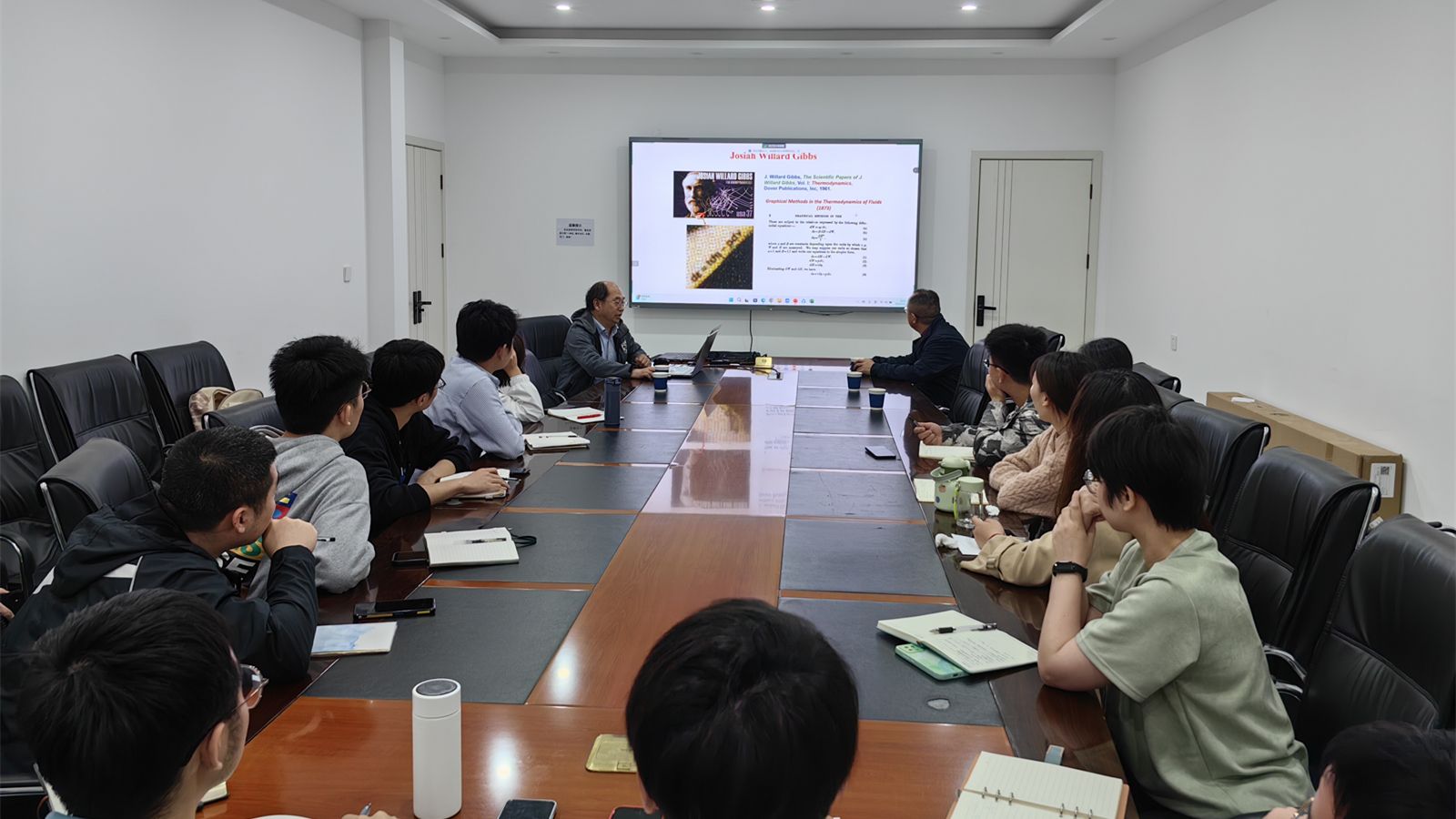 2024年4月10日下午和2024年4月11日上午,陈双林在A区综合实验楼演讲厅一楼大会议室为好博体育师生开展了两场关于材料热力学基础的讲座。在讲座中,他通过计算和图解的方式阐述金属固态储氢比液态储氢在体积储氢密度上的优势。介绍了材料热力学的发展史和热力学与其他学科的关联。详细介绍了Gibbs自由能表达式的构建及其与熵和体积的关系,从水、Fe-C等具有代表性的相图由浅入深介绍相图的计算和实验测定,同时深入讲解多元体系中Tie-line与临界点的关系,并展示了Pandat软件计算临界点的步骤。