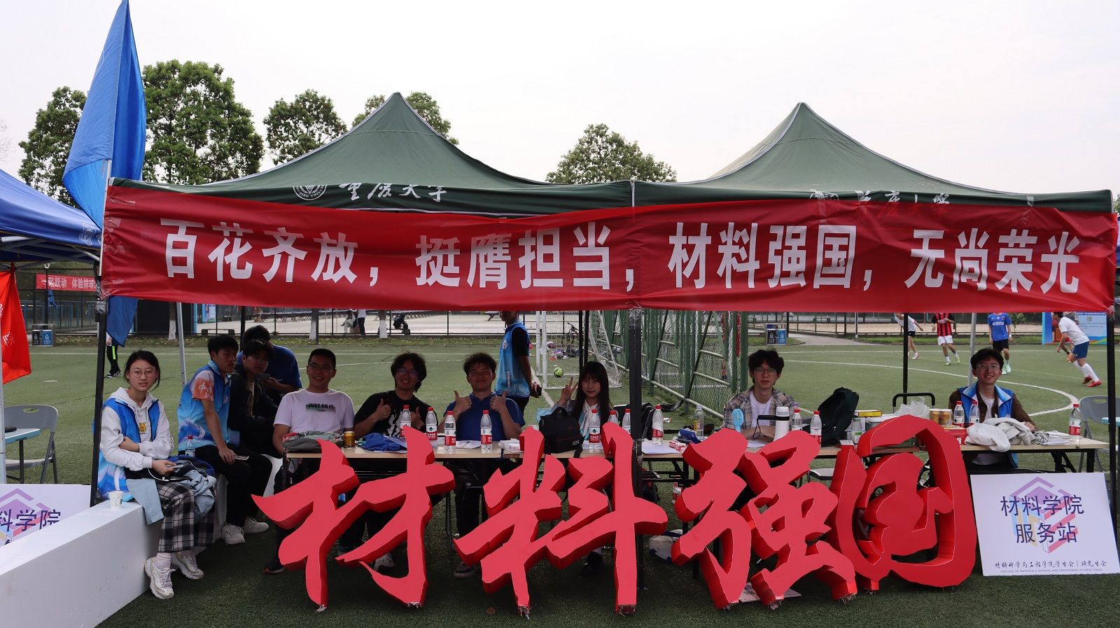 开幕式结束后,在文体部同学的组织下, 我们迅速的撑起了服务站,为运动员们保驾护航。