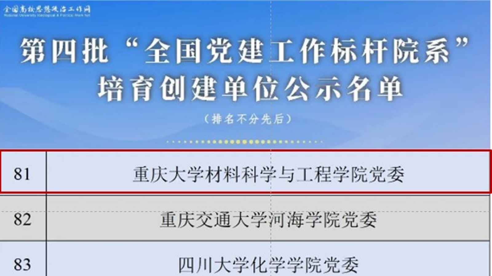 近日,教育部办公厅公布了第四批全国党建工作示范高校、标杆院系、样板支部培育创建单位名单。好博体育材料科学与工程公司党委入选第四批“全国党建工作标杆院系”培育创建名单。