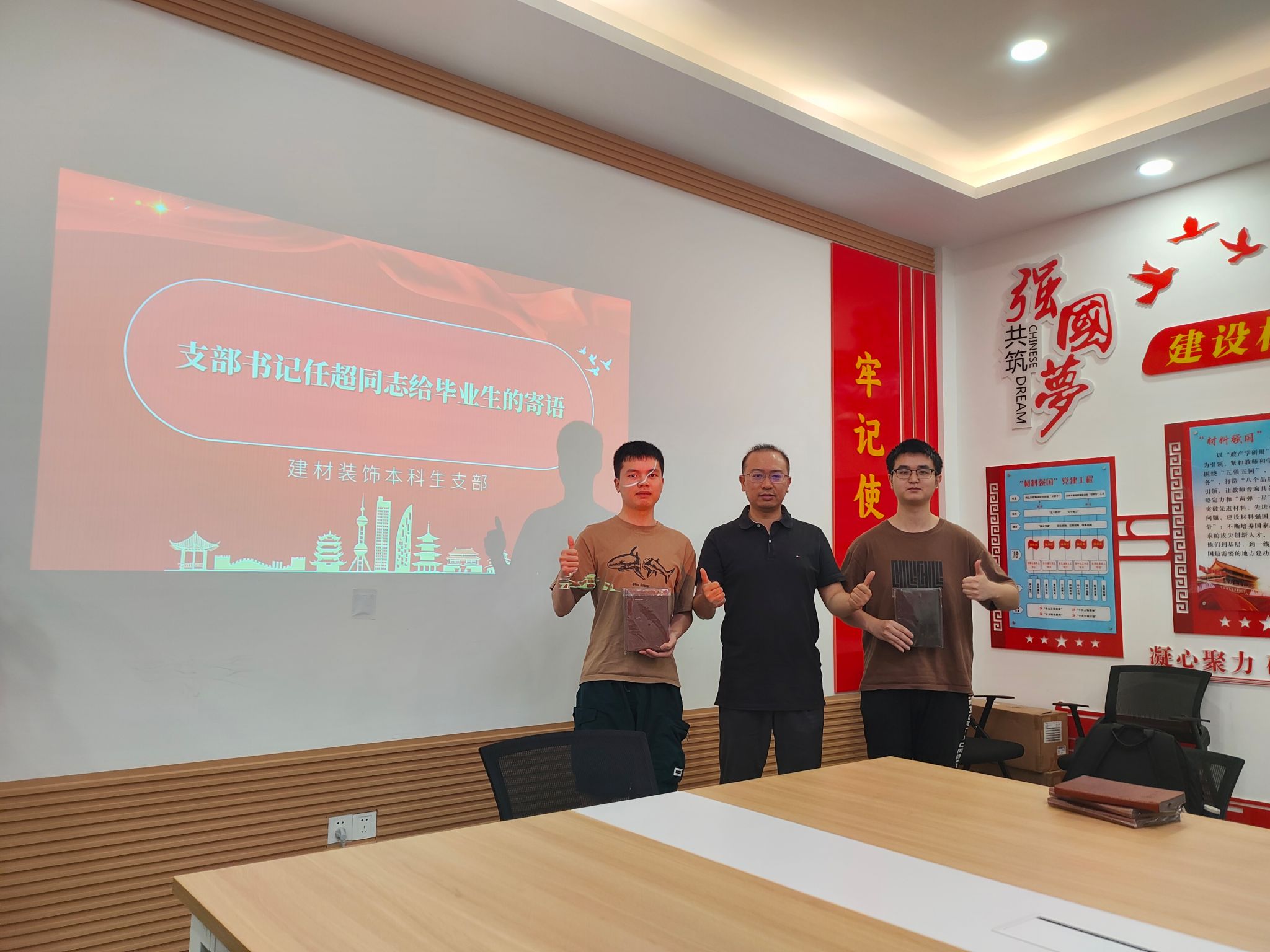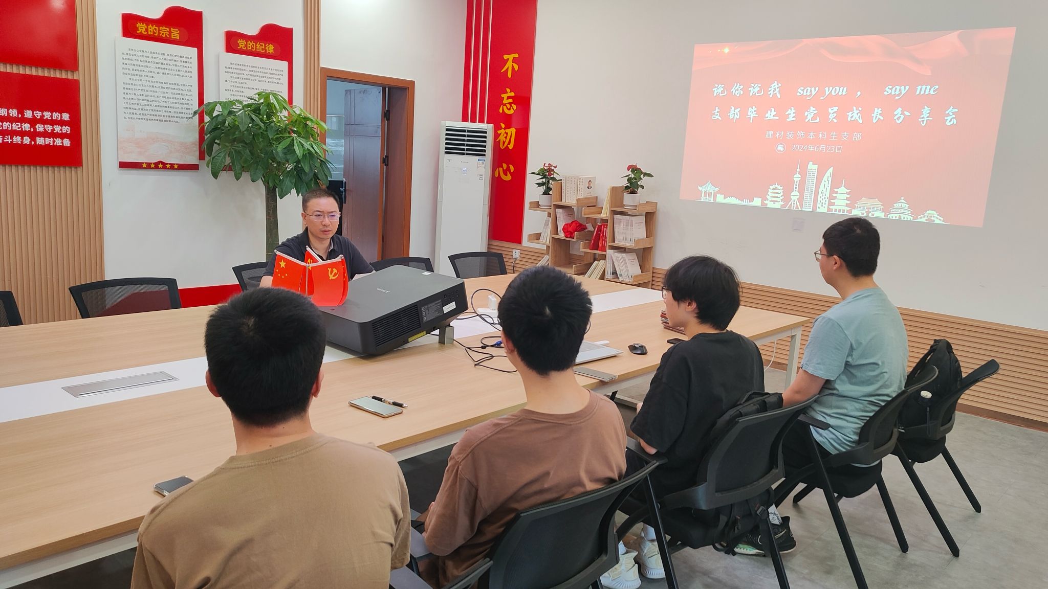2024年6月23日上午,建材装饰本科生支部开展“say you ,say me”毕业生党员分享会。支部书记任超老师主持本次分享会,优秀党员罗景、蒋学程做大学成长与收获的分享。