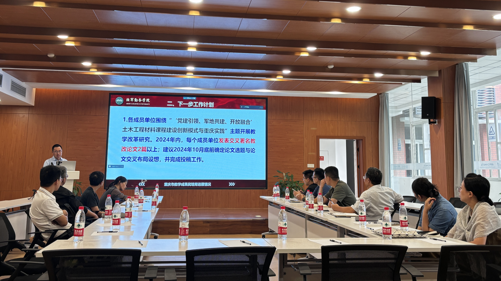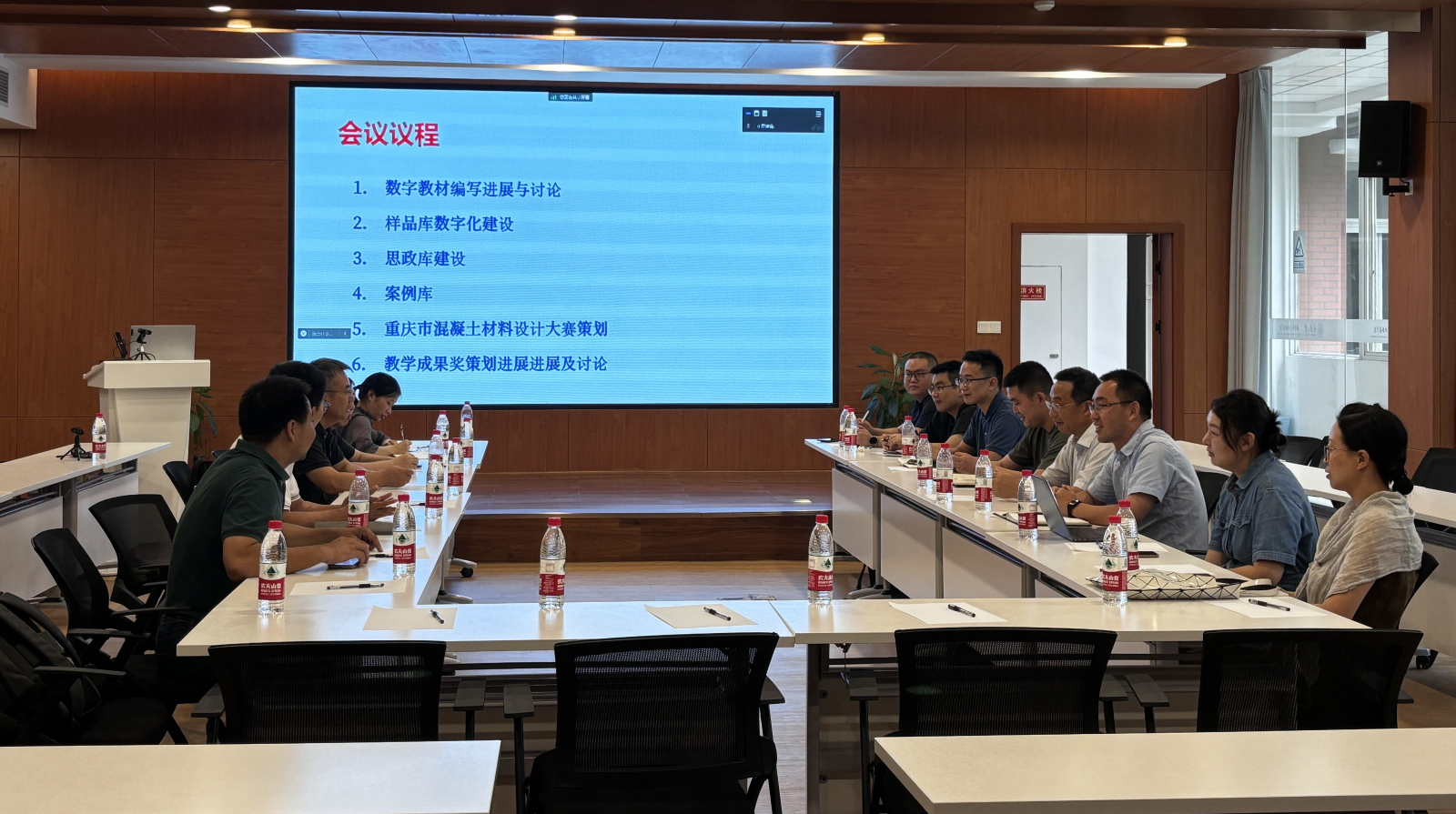 建材系王冲教授介绍了《土木工程材料》数字化教材编写进展;陆军勤务学院军事设施系副主任胡志德对样品库的数字化建设进展进行了详细介绍;刘娜副教授分享了案例库的建设情况,与会专家教授就如何提高样品库VR资源有效融入、案例库建设的丰富度及使用问题提出了建议;重庆科技大学的张明涛副教授就思政库建设进展情况进行了介绍;林青山对教材中文字内容、动画、样品库、案例库和思政库的数字化建设中存在的问题进行了解答。重庆交通大学副经理郭鹏介绍了重庆市混凝土材料设计大赛策划情况,与会专家探讨了赛事内容及方式,这将成为课程建设的一项重要成果。最后,胡志德就教学成果奖培育情况进行了介绍,各高校专家教授对下一步工作计划进行了研讨,并共同探讨了五校联合共建党支部活动的可行性。