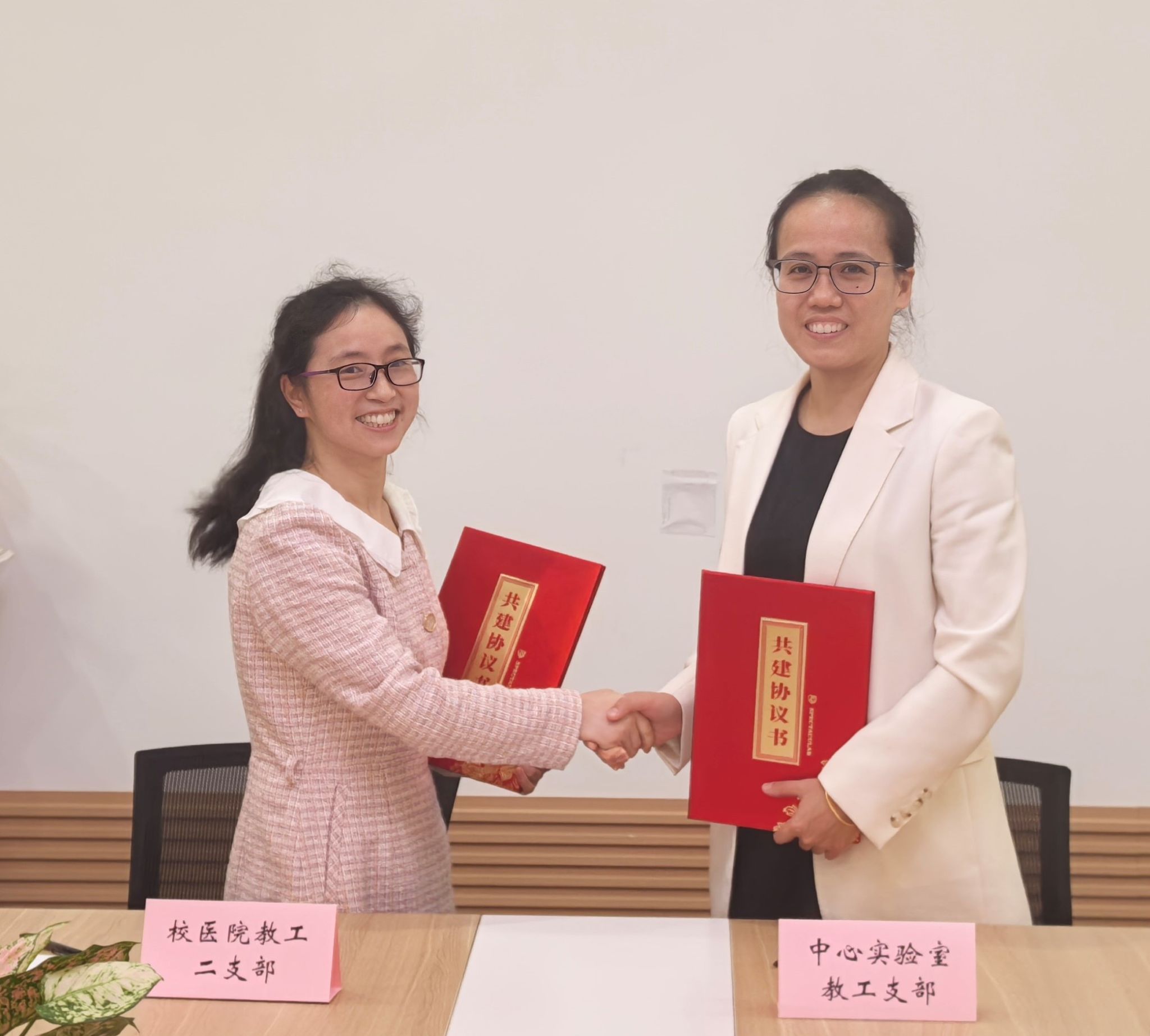 随后,陈洁书记代表公司党委讲话。她指出,基层党组织共建是创新基层党建工作的有益尝试,也是推动学院“党建驱动·材料强国”工程的有力抓手,希望中心实验室教工支部和校医院教工二支部以组织共建为契机,促进双方党建工作和业务工作的共同发展,实现基层党组织优势互补,为学校的双一流建设贡献力量。双方就协议中涉及的组织建设互促、党员教育互动和志愿服务互助等具体共建内容进行了详细讨论。中心实验室教工支部书记覃丽禄与校医院教工二支部书记熊建琼代表双方签署了共建协议。