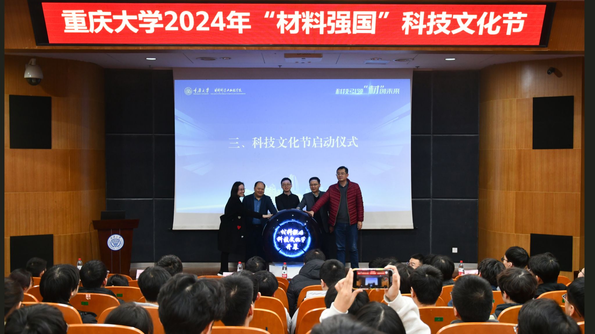 在现场师生的共同见证下,丁林、陈洁、陈泽军、陈厚文、龙木军共同按下启动键,宣布好博体育2024年“材料强国”科技文化节正式开幕。