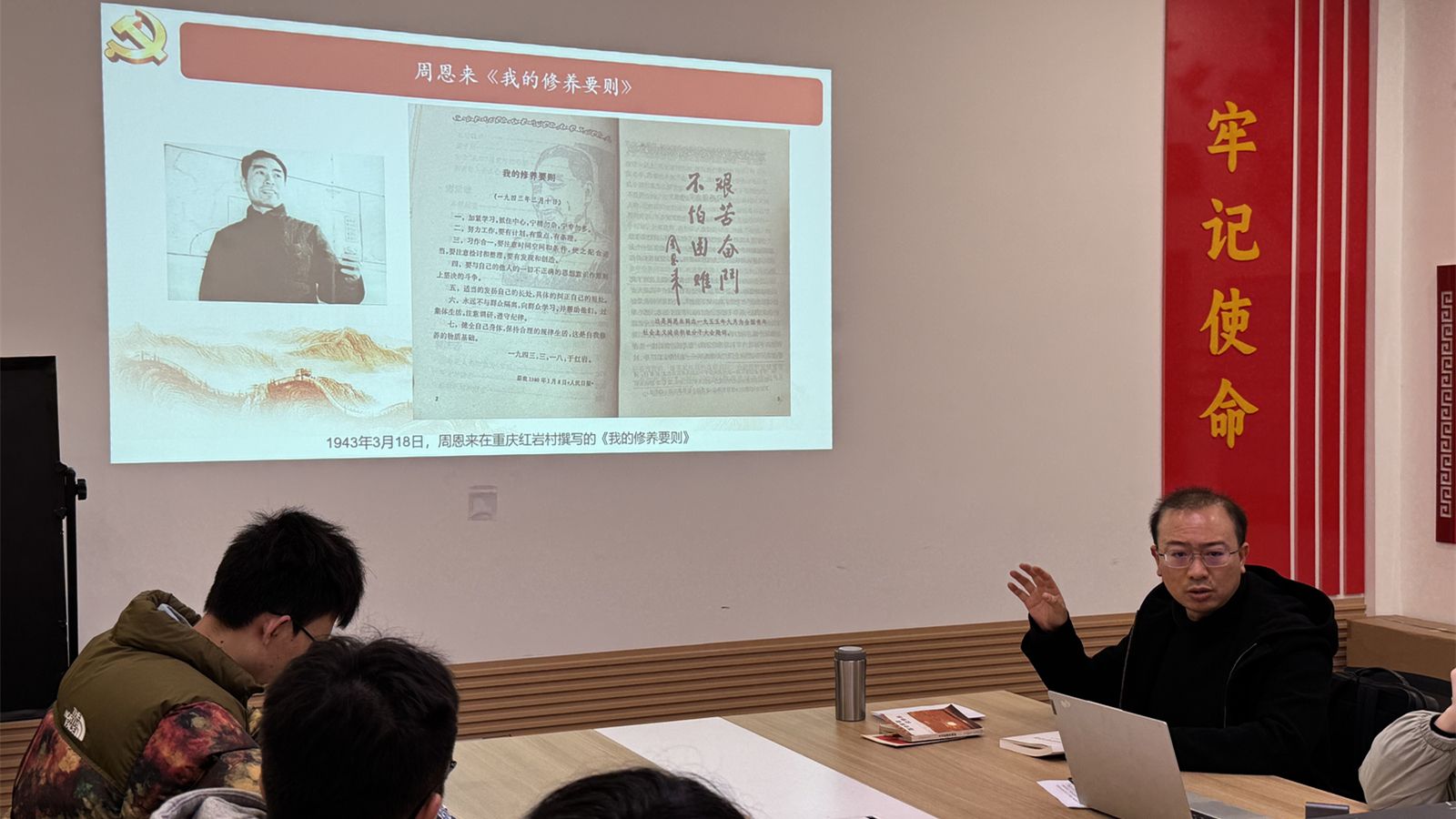 在对著作进行解读后,任超选读了自己在阅读这本著作时印象深刻的文段,并结合周恩来同志写的《我的修养要则》对学习内容进行总结。他表示共产党员要将党性修养作为终身课题,通过不断学习和实践,提升自身的思想政治觉悟,时刻与党中央保持高度一致。他指出党员不仅要掌握马克思主义理论,更要将其运用到实际工作中,在为人民服务的过程中检验和发展理论知识。鼓励支部党员对标《我的修养要则》,不断检视自己,不断向高标准看齐,共同提高党性修养。