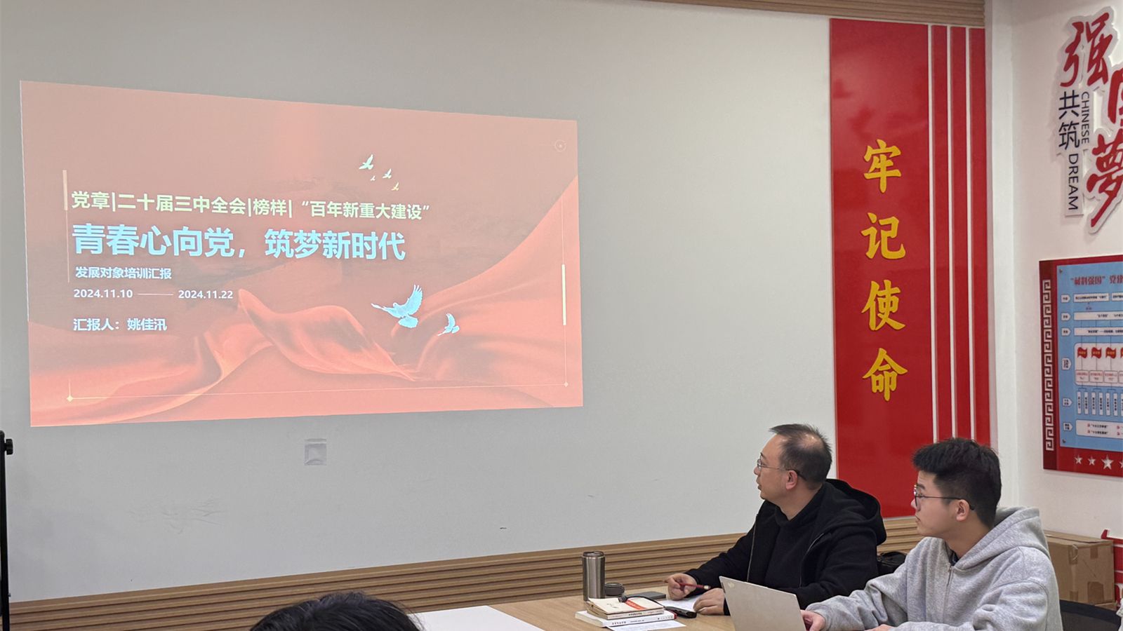 在支部书记讲党课结束后,李京、徐茂荣、姚佳汛三位同志结合发展对象培训内容进行汇报和心得分享。