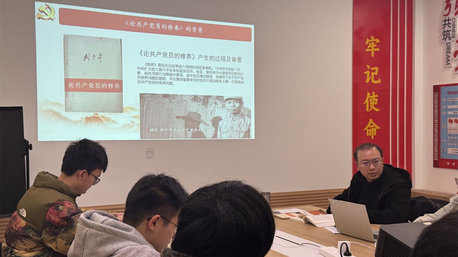 支部书记任超围绕《论共产党员的修养》产生的过程与背景,以及共产党员为什么要进行修养、共产党员应在哪些方面加强修养、共产党员怎样进行修养几个方面进行阐述和解读,强调了学习《论共产党员的修养》对于提升党员思想境界和党性修养的重要意义。